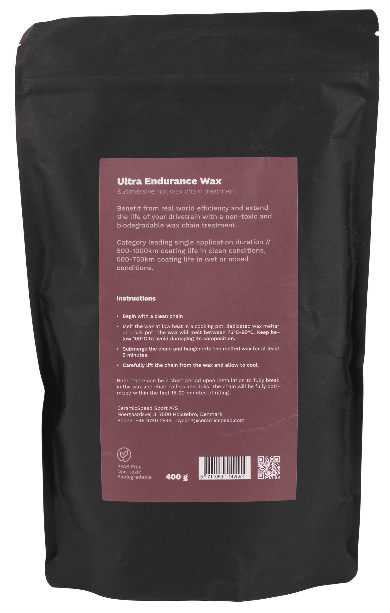 How far can you ride with a single hot wax application? - Ceramicspeed asked itself this question, which led its in-house chemists to develop the UFO Ultra Endurance Wax. It sets completely new standards for extremely long-lasting performance and quiet performance in different weather conditions. Your chain stays clean and perfectly lubricated for longer. Conventional chain oil, on the other hand, tends to attract dirt. In test rides, riders achieved a range of over 1000 km in varying conditions with just one application.