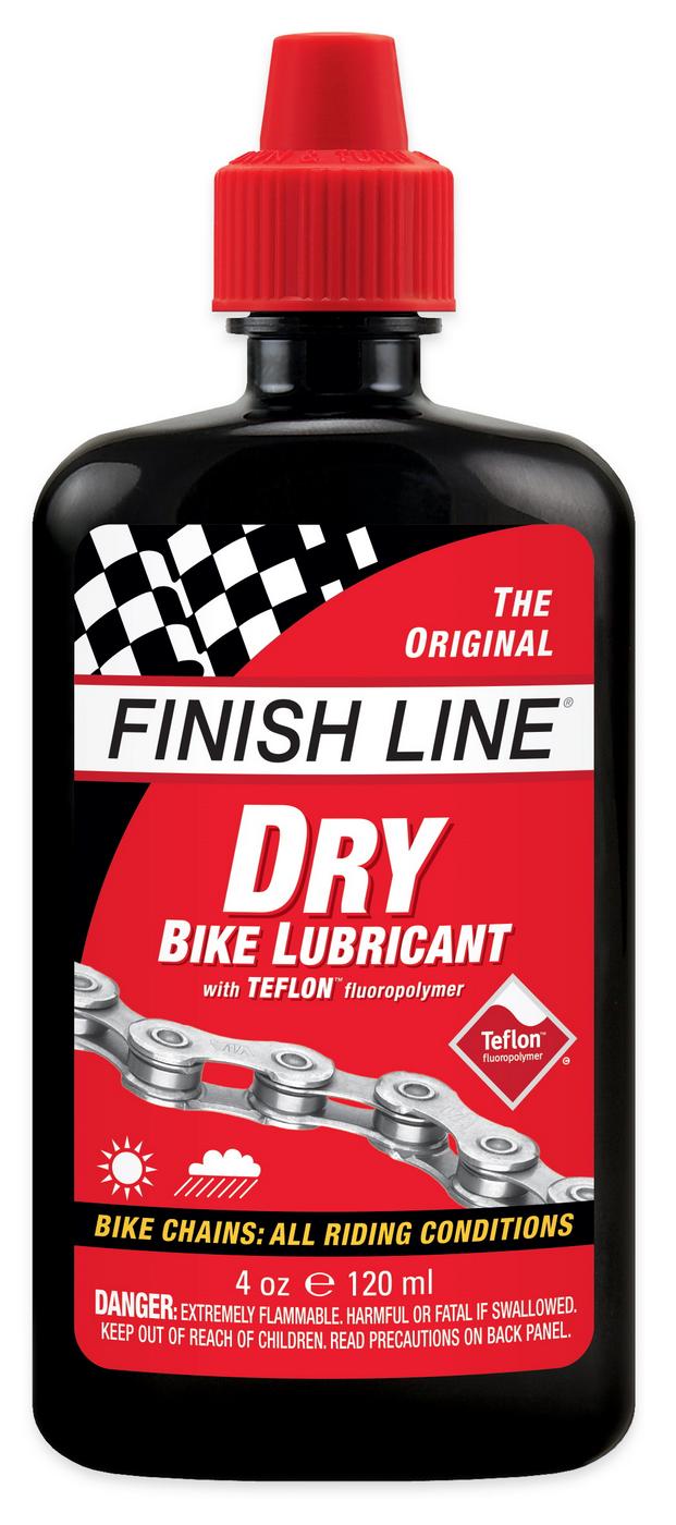 Finish Line's Dry Lube goes on wet and sets up with a dry 'wax-like' synthetic film that helps keep your chain clean by not absorbing excessive amounts grit, grime, or dust. Thanks to the added Teflon fluoropolymer, Finish Line's Dry Lube minimizes pedaling friction, repels moisture, and withstands rides up to 160 kilometers. An extremely versatile lubricant and a perfect choice for many road and off-road cyclist. Dry Lube is especially recommended for riding on or off-road in dry, dirty, dusty environments, yet it holds up well in moderately wet conditions. Dry Lube can also be used on derailleurs, shifters, cables, and brake pivot points. Finish Line's Dry Lube provides optimum drivetrain efficiency without attracting an excessive amount of abrasive contaminants. This is Finish Line's most popular and versatile lubricant.