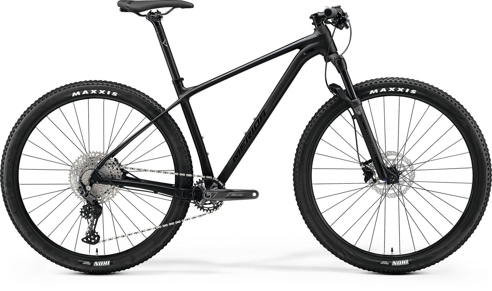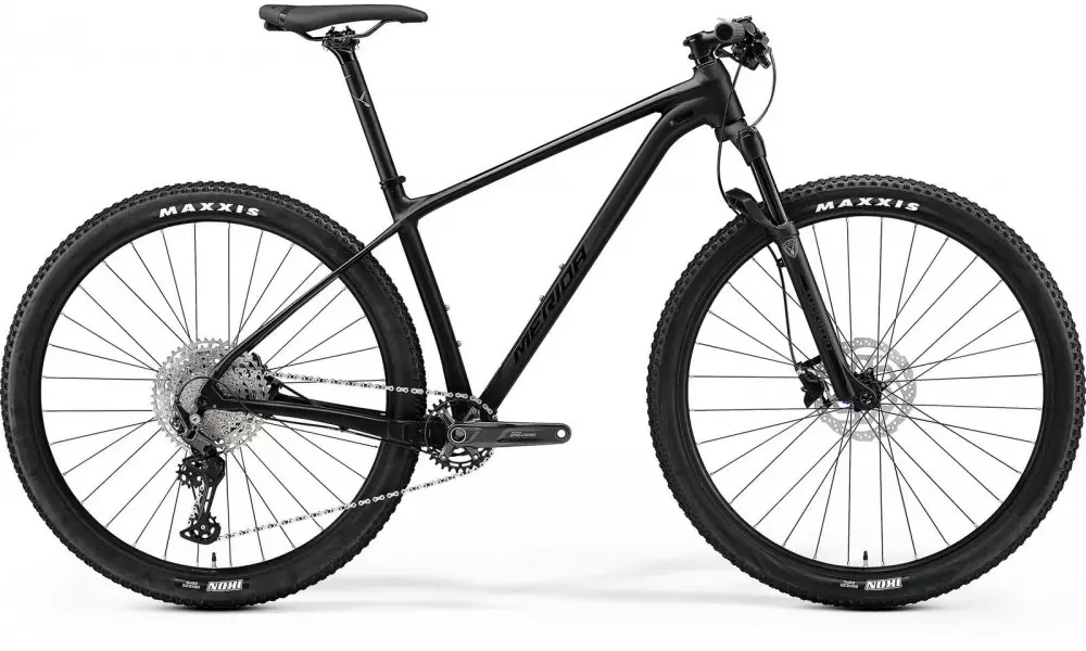 Our classic hardtail with 29" wheels. The BIG.NINE with its racing geometry is an ideal companion on XC and marathon race tracks.FRAME: BIG.NINE LITE; material: aluminium; 29x2.25" max. wheelsize; 148x12mm axle standard; BB92 bottom bracket standard / Technology: PROLITE 66 TRIPLE BUTTED ALUMINIUM, HYDRO FORMING SYSTEM, FLEX STAY, X-TAPER HEADTUBE, SMOOTH WELDING, INTERNAL CABLE ROUTING, DOWN TUBE EXIT, SMART ENTRY, DI2FORK: Manitou Markhor Comp; Air; 100mm suspension travel; Tapered; Remote lockout; 51mm offset; 29x3.0" max wheelsizeBRAKES: Tektro M275; 2 piston; rotor front: Shimano RT10; 180mm; rotor rear: Shimano RT10; 160mmHEADSET: MERIDA M2331 HANDLEBAR: MERIDA EXPERT CC; material: aluminium; 720mm width; flatSTEM: MERIDA EXPERT CC; material: aluminium; 31.8mm diameter; -6° stem angleGRIPS: MERIDA COMP EC REAR DERAILLEUR: Shimano Deore M5100 Shadow+; SGSSHIFTERS: shifter rear Shimano Deore M5100 SEAT POST: MERIDA COMP CC; material: aluminium; 30.9mm diameter; 0mm setbackSADDLE: MERIDA COMP CC PEDALS: NOT INCLUDEDCHAIN: KMC X12 CHAINWHEEL: Shimano Deore M5100; 32 teethFREEWHEEL: Shimano Deore M5100; 11-51 teeth; 11 speedBOTTOM BRACKET: Shimano MT500-PA pressfit RIMS: MERIDA COMP CC; 20mm inner width; material: aluminiumTYRES: tire front: Maxxis Ikon; 29x2.2"; wire / tire rear: Maxxis Ikon; 29x2.2"; wireHUBS: hub front: Shimano MT400-B; 110x15mm width front hub; 32 spoke holes; Centerlock / hub rear:Shimano MT400-B; 148x12mm width rear hub 32 spoke holes; CenterlockSPOKES: Black stainlessWEIGHT: 12.49 kg SPEEDS: 11