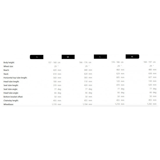 • Seat tube angle: 77 mm