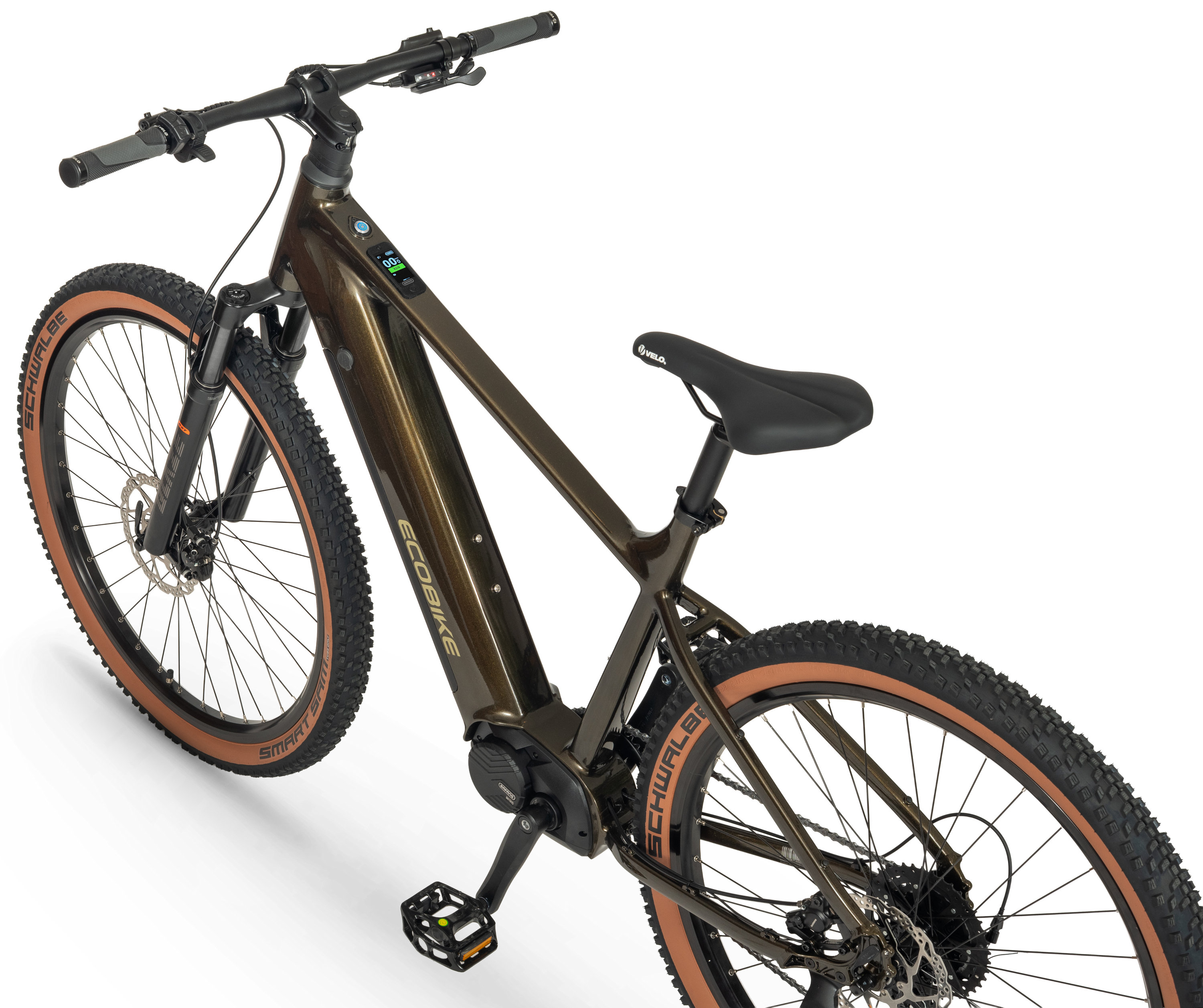 A hydroformed aluminum frame, suspension fork, and MTB geometry ensure great handling on forest trails and mountain paths. The updated headset improves steering precision, while the magnetic sensor in the rear brake rotor adds reliability to the electronics.