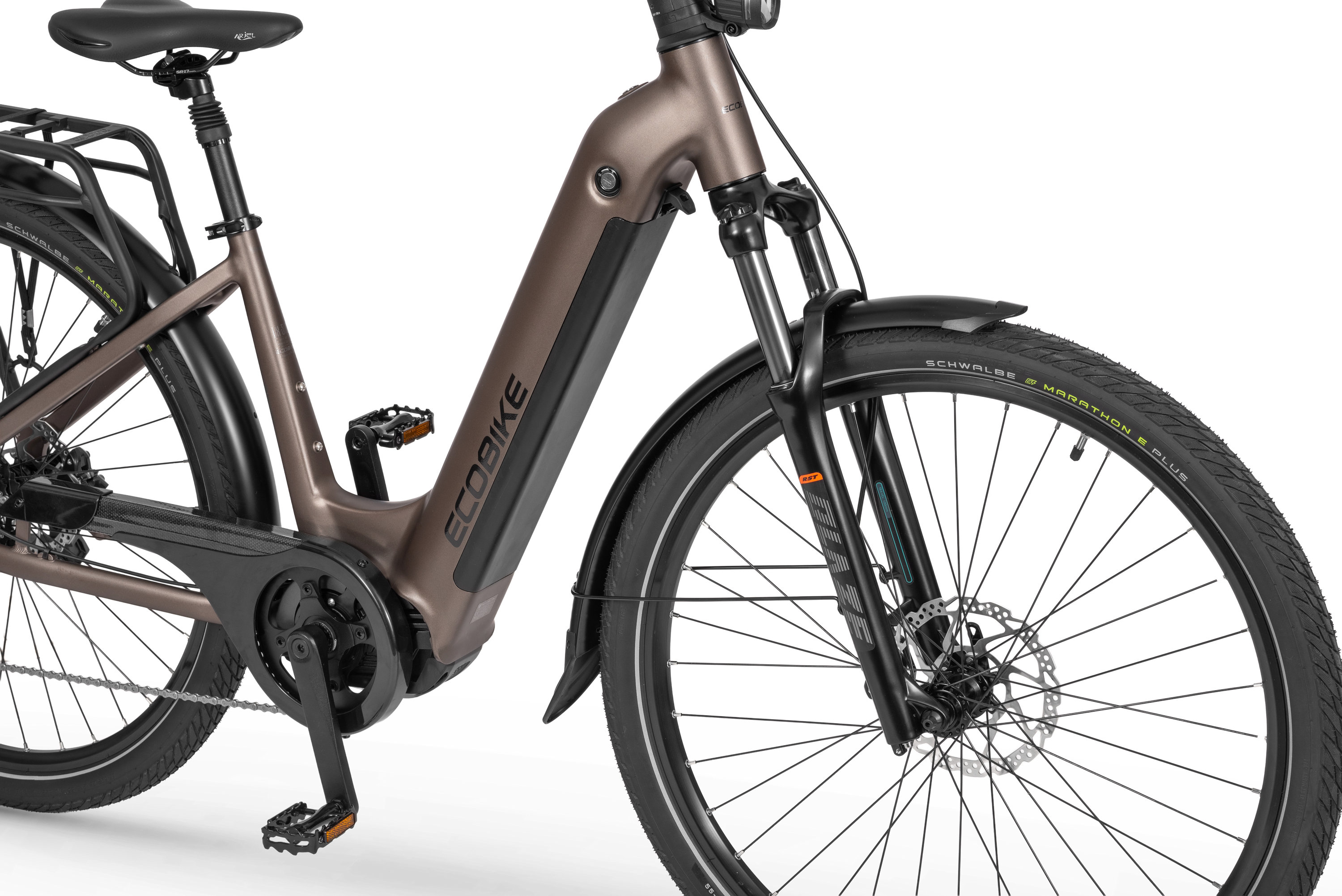 - TYRES: 28" x 2.15 Schwalbe Marathon E Plus