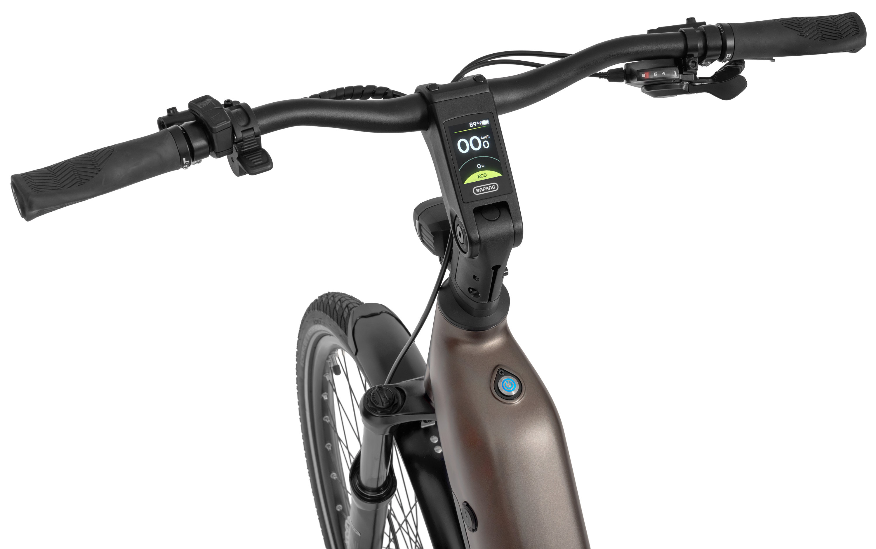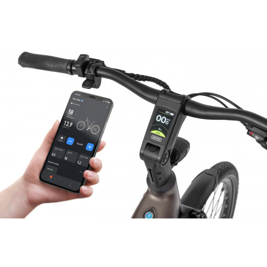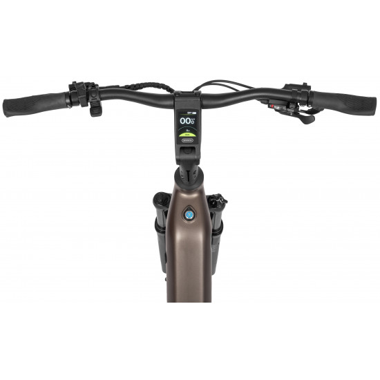 The headset and clean cockpit design keep all cables neatly hidden. The display integrated into the stem gives you full control over assistance settings while preserving the bikes elegant silhouette.