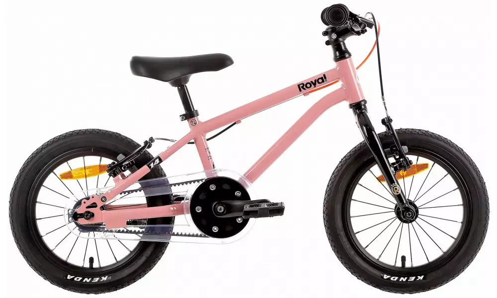 - Wheels: Like every component of the Royal Baby bicycle, the wheels have also been designed to keep the weight as low as possible while maintaining the highest quality. The double reinforced rims made of aluminium and the use of 20 spokes per wheel make the wheel light and appropriately strong. The bike uses hubs with machinery bearings, which ensures quiet and smooth operation. This is complemented by the proven Kenda tyres with a width of 1.75", which result in low rolling resistance on hard surfaces, but will also cope with light gravel.