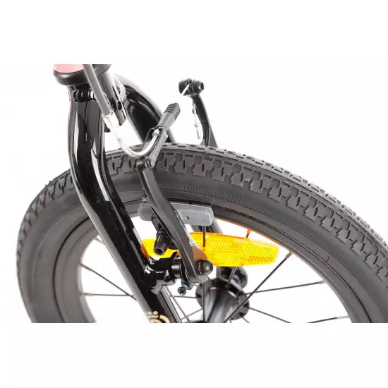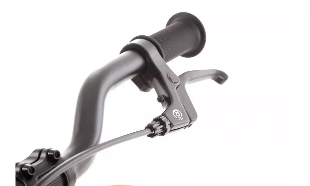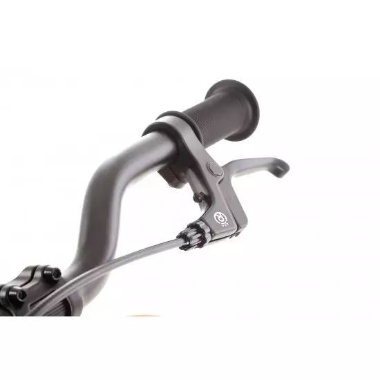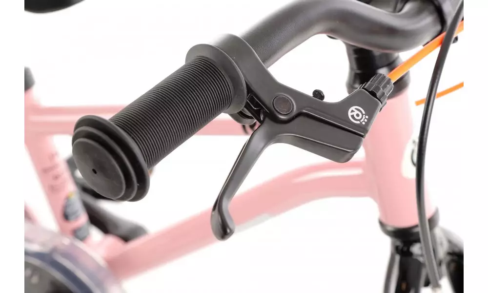 - Brakes: Aluminium V-brake brake pads with braking power suitable for a child's bike and brake handles adapted to a child's hand. An additional feature is the use of orange cable armour for the rear brake.This makes it very easy to explain to your child which brake to use, e.g. for an emergency stop.