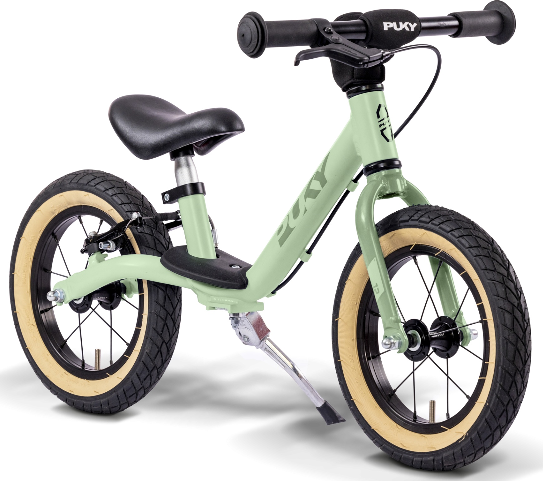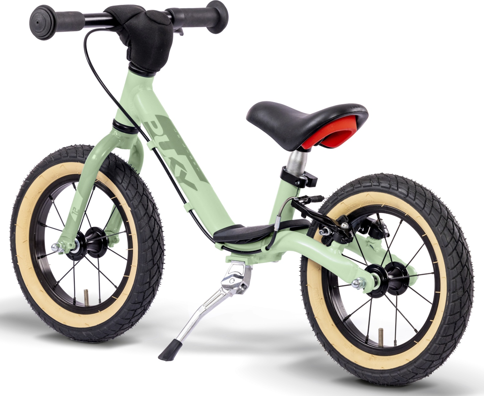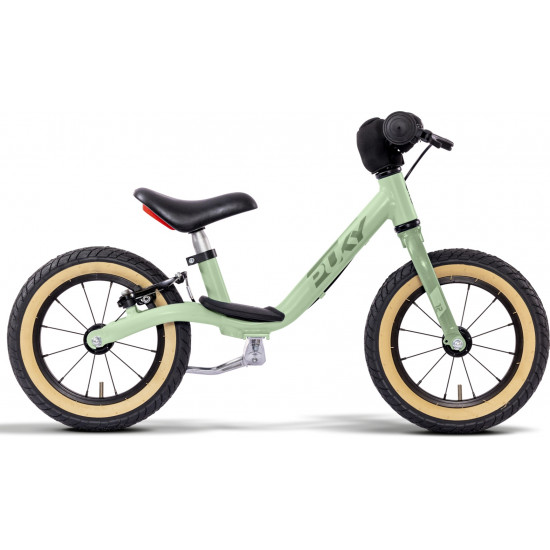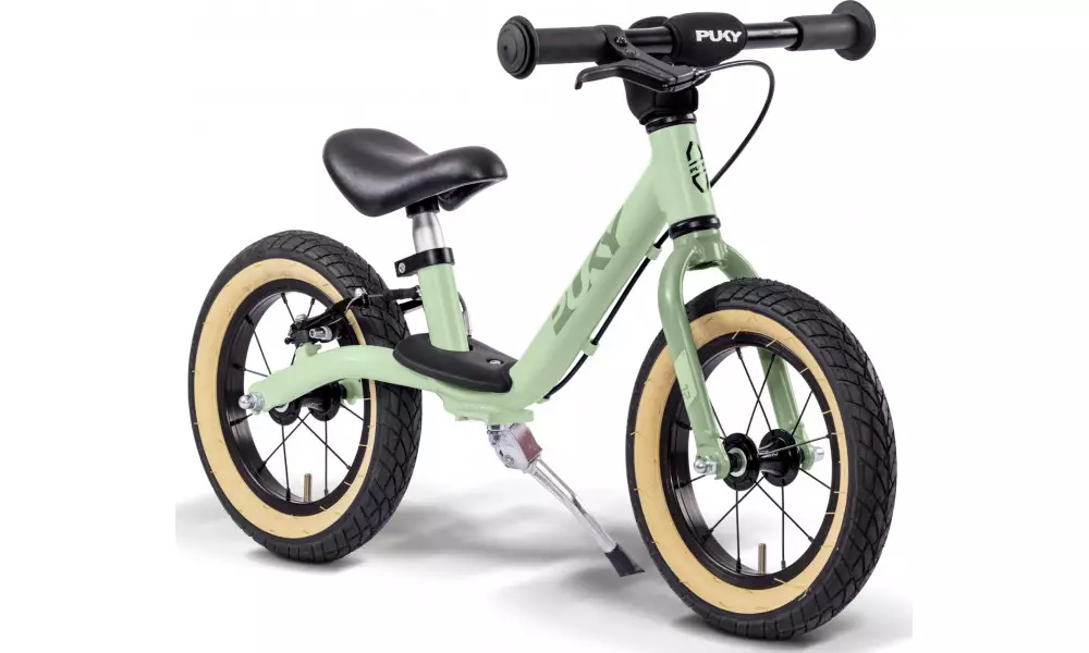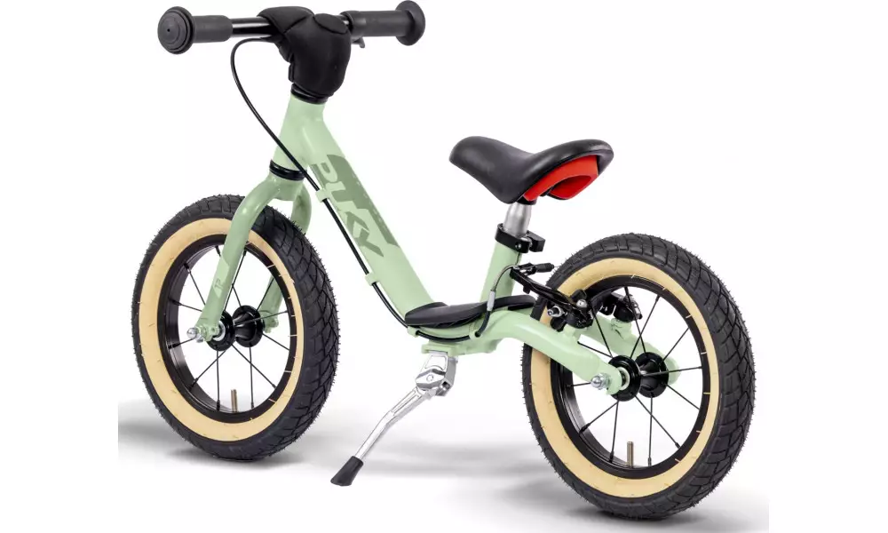 The child's momentum is optimally transferred by the special balance bike saddle. The V-Brake on the rear wheel has, even at higher speeds, a good delay and brings one safely to a halt. Safety handlebar grips and handlebar pads have always been standard equipment on balance bike from Puky. In addition, there is the shock-resistant powder coating and a foldable side stand.