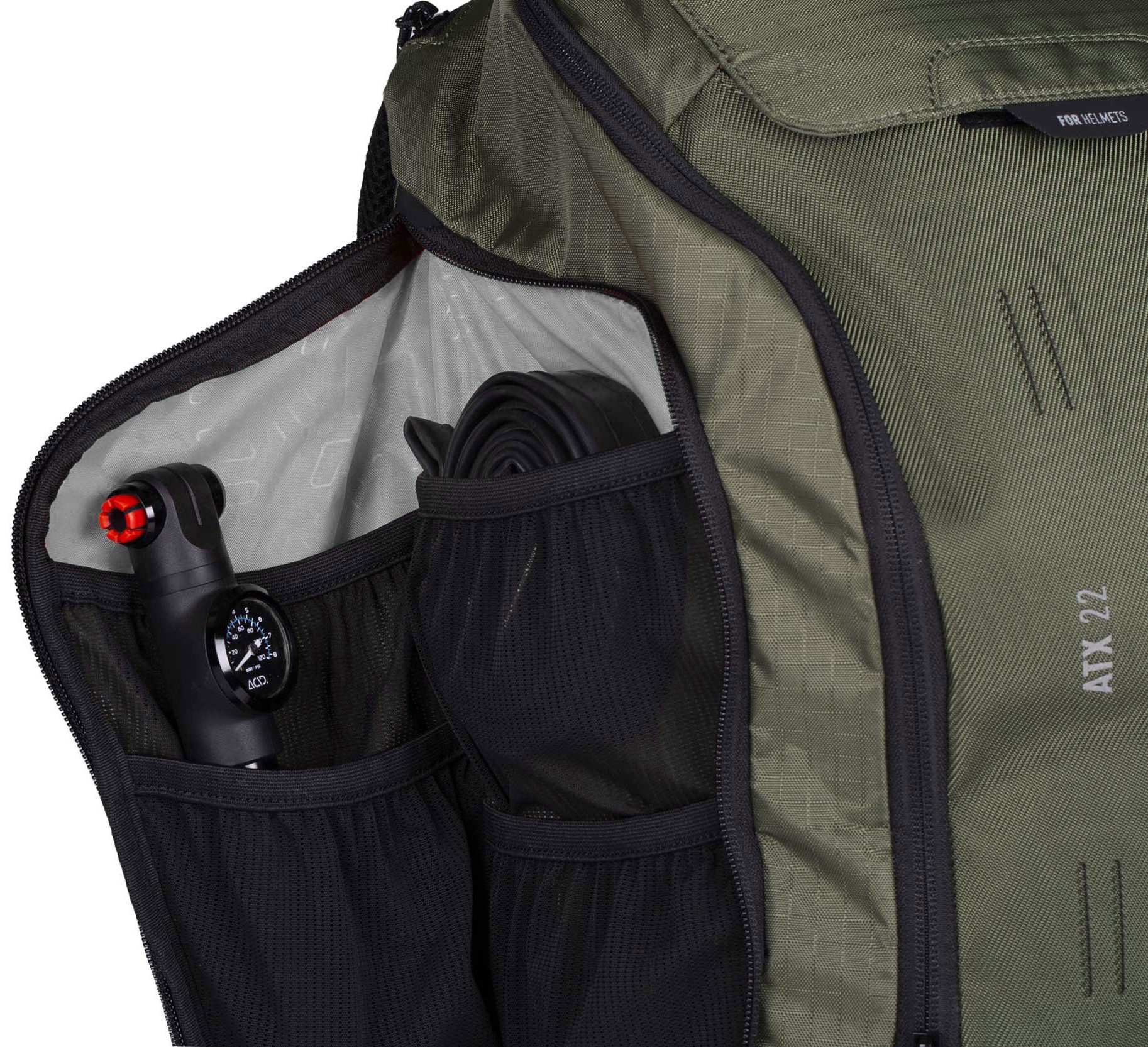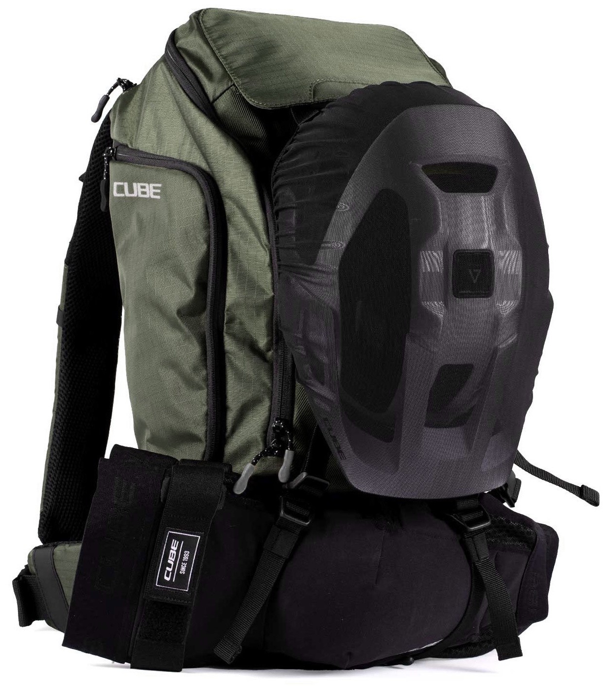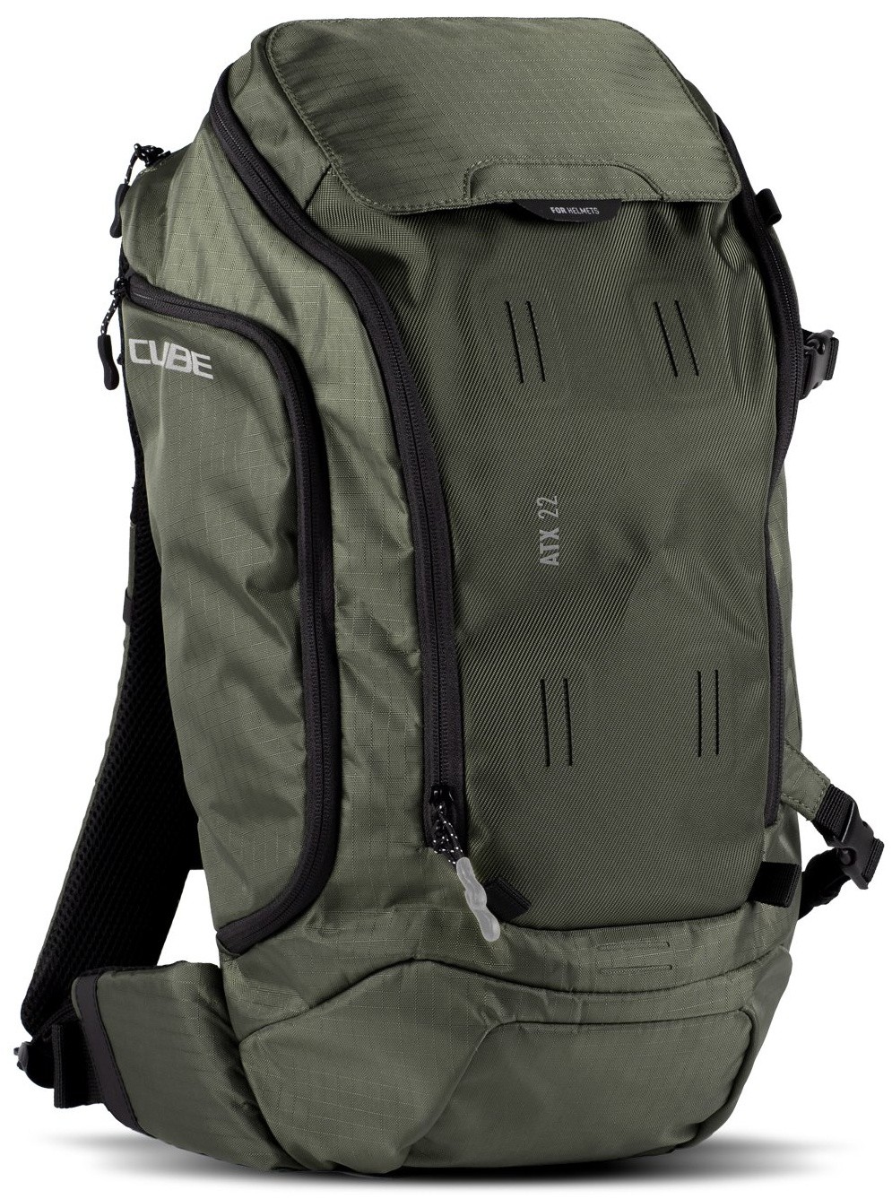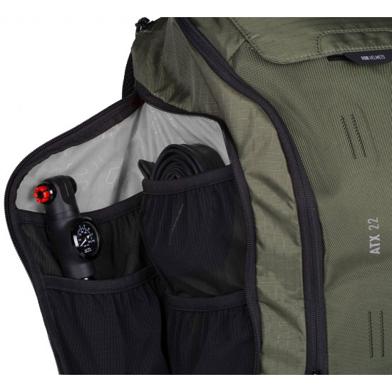 The CUBE ATX 22 offers plenty of space for everything you need on extended tours. Featuring the CUBE-design NF Ergonomics back system and padded hip belt, the backpack sits securely and comfortably on your back. Weight is evenly distributed, while the back panel is well-padded and ventilated. The MOLLE system allows for flexible expansion, adapting the pack to any mission. Side compression straps offer additional options for securing a jacket or protectors. With its smart compartment layout, dedicated tool pocket and easy-access smartphone side pocket, your essentials are always within reach. Rain or shine – thanks to the included rain cover and hydration pack compartment – this backpack gets you to your destination reliably.