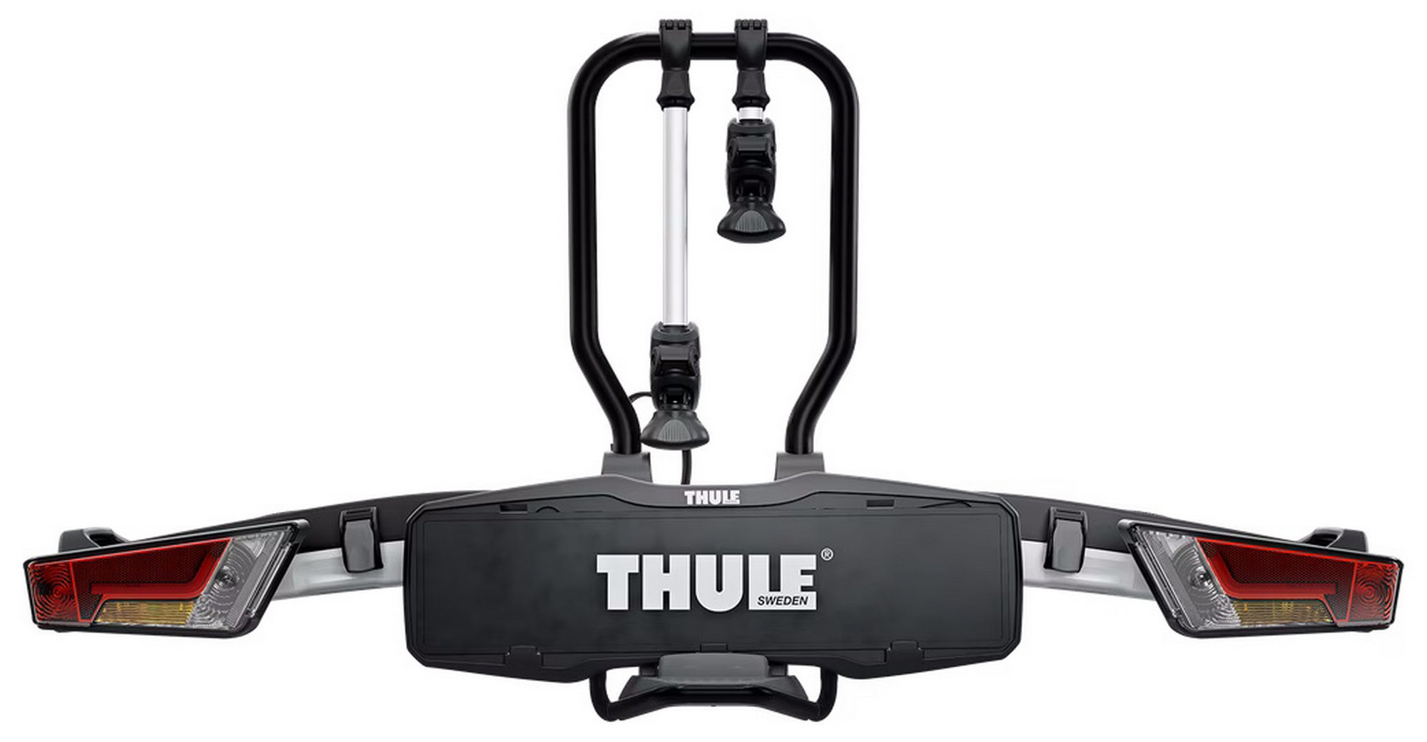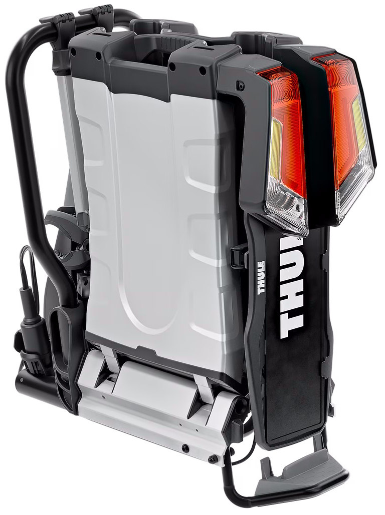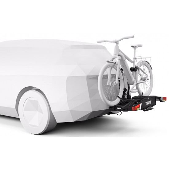 The fully foldable, compact, and easy-to-use towbar-mounted bike rack for all types of bikes.Fully foldable for convenient mounting, handling and storageHigh load capacity enabling transport of e-bikes and heavy mountain bikesEasy mounting of bikes through detachable bike arms with lockable Thule AcuTight torque limiter knobs that click when optimal torque is reachedLarge distance between wheel holders enabling transport of sturdy bikes with large wheel basesAdjustable pump buckles with extra-long wheel straps for easy fastening of wheels (up to 4.7" wheels) enabling transport of fat bikesEasy trunk access even with bikes mounted, thanks to smart foot pedal tiltEasy mounting and adjustment of the bike rack before closing the tightening handle, thanks to the towbar couplings initial stabilityErgonomic transport of the bike rack thanks to the integrated carrying handlesPre-assembled, no tools requiredLock your bikes to the bike rack and your bike rack to the towbar (locks included)IMPORTANT: Please check compatibility before buying - https://www.thule.com/en-gb/gb/buyers-guideMax number of bikes: 2Load capacity: 60 kgMax bike weight: 30 kgSize: 123 x 63 x 68 cmFolded size: 31 x 63 x 68 cmWeight: 17.9 kgFits frame dimensions: 22-80 mmDetachable frame holdersDistance between bikes: 22 cmCarbon frame compatible (Adapter/s required: Thule Carbon Frame Protector)Wheel mounting on adjustable holders: Pump bucklesTilt function (with bikes)Does not fit cars with exterior spare tyreRear lightsPower connector: 13-pinOne Key System compatibleLockable bike-to-rackLockable rack-to-vehicleCompatible with e-bikesCity CrashGS Mark Quality Seal for Thule product (GS Geprufte Sicherheit)Plus X Award 2017/2018 - Thule EasyFold XTAccessories for Thule EasyFold XT 2 (not included, can be ordered separately):Thule EasyFold XT Carrying Bag 2Thule EasyFold XT Loading RampThule Carbon Frame ProtectorThule XXL Fatbike Wheel StrapsThule Bike Frame AdapterThule Wheel AdapterThule Adapter 9906Thule Number PlateThule Wheel Strap LocksThule One-Key System 4-pack