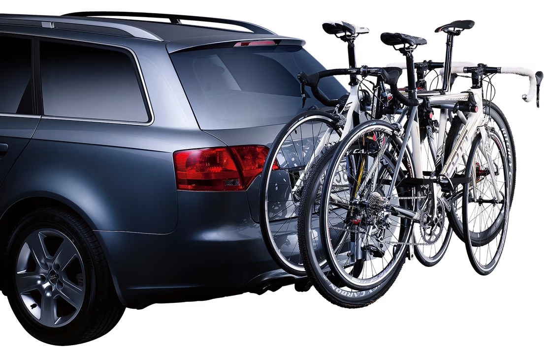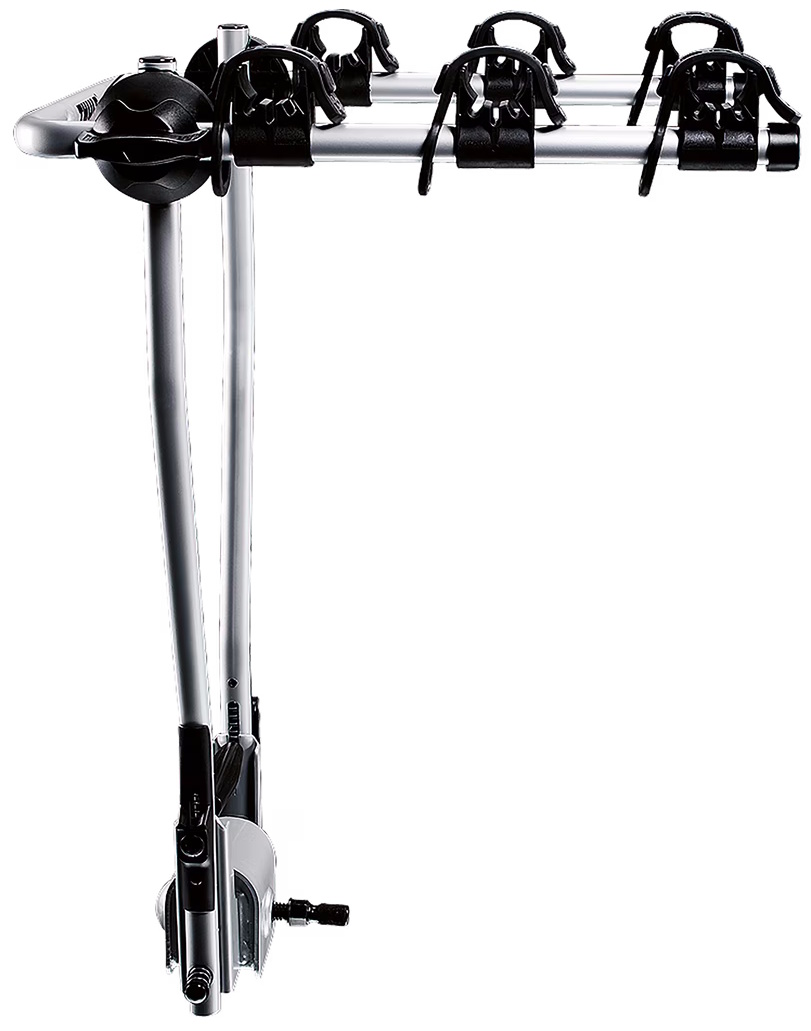 Strong coupling that needs no pre-adjustment for fixing. Soft, protective frame holders keep the bikes in place. Folds flat for easy storage and handling. Carrier lockable on tow bar with accessory Thule Lock 957. Use Thule Bike Frame Adapter 982 for Fitting of bikes with non-standard frames (e.g. ladies bikes, BMXs, downhill bikes). Load capacity Bikes: 3Load capacity (kg): 45 kgFits wheel dimensions: -Max bike weight: 15 kgDistance between bikes: -Length (cm): -Width (cm): 47 cmWeight (kg): 7.2 kgFits frame dimensions: All sizes down to 20 junior bikes.Detachable frame holders: noTiltable with bikes: noOne Key System compatible: -Fits cars with exterior spare tyre: noFits most bikes with disc brakes: yesRear lights: Adapter Required: Thule Light Board 976Powerplug: -TÜV Approved: -Fulfils City Crash norm: yesMiscellaneous: Adapter 9761 needed for fitting Lightboard 976.