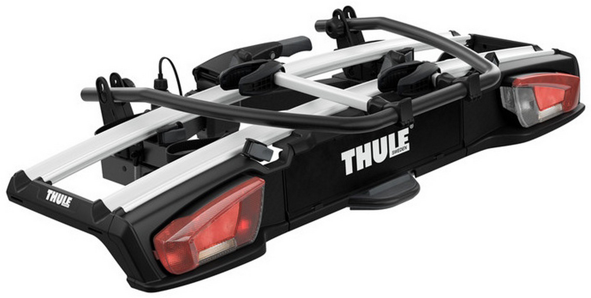The versatile bike rack for all types of bikes from e-bikes and fatbikes to small childrens bikes.High load capacity enabling transport of e-bikes and heavy mountain bikesExtra-wide between wheel holders (25 cm) for the easiest mounting of sturdy bikesPossible to increase the load capacity to 3 bikes by adding Thule VeloSpace XT Bike AdapterExtra-long wheel trays enabling transport of large bikes (up to 1300 mm wheelbase).Adjustable pump buckles with extra-long wheel straps for easy fastening of wheels (up to 4.7" wheels) enabling transport of fat bikesEasy mounting of bikes through detachable bike arms with Thule AcuTight torque limiter knobs that click when optimal torque is reachedEasy mounting and adjustment of the bike rack before closing the tightening handle, thanks to the towbar couplings initial stabilityEasy trunk access even with bikes mounted, thanks to smart foot pedal tiltLock your bikes to the bike rack and your bike rack to the towbar (locks included)Combine with Thule BackSpace XT to create an all-round cargo carrier, giving the car 300L of easily accessed, extra loading spaceIMPORTANT: Please check compatibility before buying - https://www.thule.com/en-gb/gb/buyers-guideMax number of bikes: 2 ( 3 with adapter)Load capacity: 60 kgMax bike weight: 30 kgSize: 135 x 69 x 79 cmFolded dimensions: 135 x 74 x 25 cmWeight: 18.7 kgFits frame dimensions: 22-80 mmDetachable frame holdersDistance between bikes: 25 cmCarbon frame compatible (Adapter/s required: Thule Carbon Frame Protector)Wheel mounting on adjustable holders: Pump bucklesTilt function (with bikes)Does not fit cars with exterior spare tyreRear lightsPower connector: 13-pinOne Key System compatibleLockable bike-to-rackLockable rack-to-vehicleAccessories for Thule VeloSpace XT 2 (not included, can be ordered separately):Thule VeloSpace XT Bike AdapterThule Loading Ramp XTThule BackSpace XTThule BackSpace XT 3rd Bike ArmThule Transport WheelThule Carbon Frame ProtectorThule XXL Fatbike Wheel StrapsThule Bike Frame AdapterThule Adapter 9906Thule Number PlateThule Wheel Strap LocksThule One-Key System 4-pack