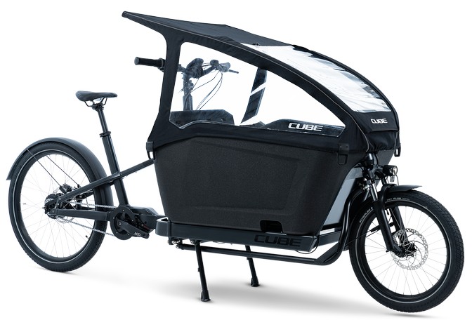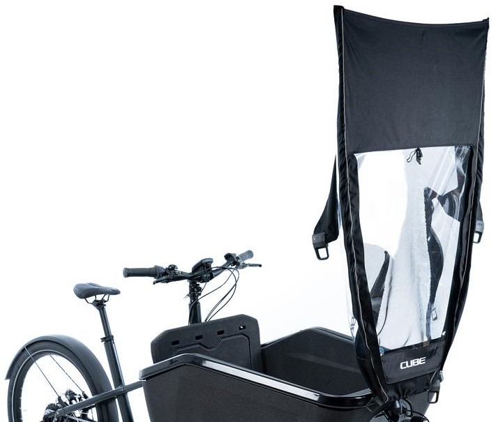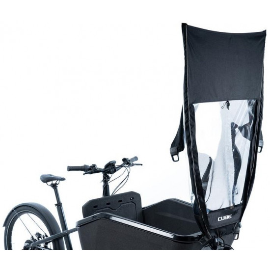 The CUBE CARGO 3.0 rain cover reliably protects the contents of CUBE Cargo Hybrid bikes from rain and dirt. The water-repellent material keeps the loading area dry, while a roll-up flyscreen and a PVC window ensure adequate ventilation and good visibility. Installation is quick and secure with fibreglass rods with connectors and a metal clamp with bolts. The robust construction provides long-lasting protection in all weather conditions, significantly increasing the everyday usability of the cargo bike.