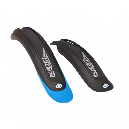 Simpla Kido muguards for children's bicycles are made from quality firm plasticDesigned for 16" wheelsWith rubber mudflap on rear mudguardMudguard has reflective logo "Simpla"With mounting parts - screws and retaining platesWidth: 65 mmWeight: 185 gColor: Black with blue mudflap (rear)