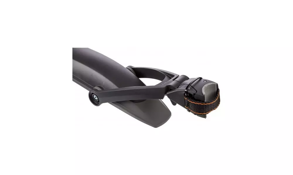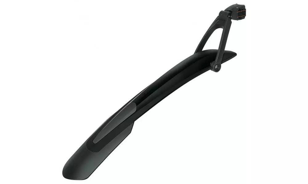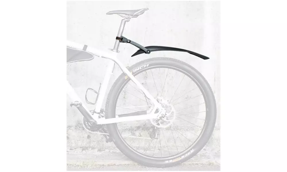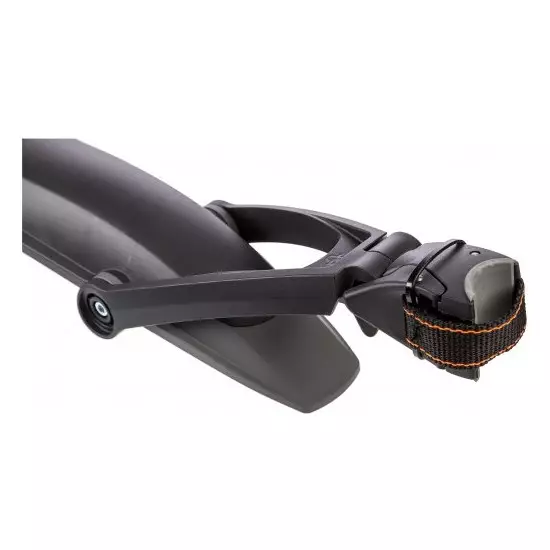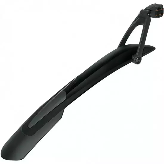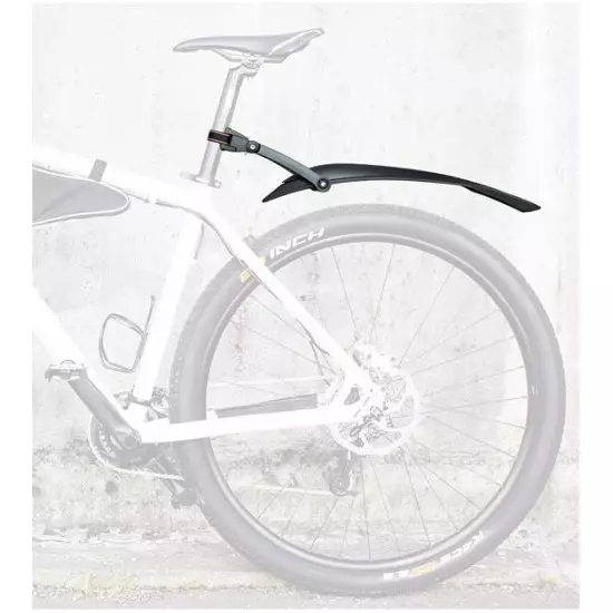 The high-quality 2-component dirtboard for the rear wheel of 29" mountain bicycles. Also suitable for 28" trekking/hybrid bicycles. Due to the quick-release mounting, the dirtboard can be fitted to almost any seat post and optimally adjusted to the wheel using the 2-joint technology. Popular choice of MTB cyclist is now in black color!