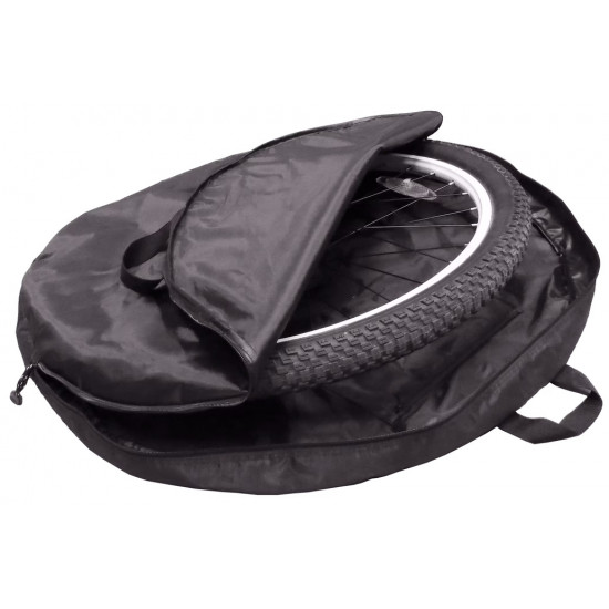 Specially designed, high-quality bag for the front wheel.Special padding, to protect the bike wheel during transport and storage.Strong nylon grip for convenient handling.For wheel sizes up to 29" or 74 cm in diameter.