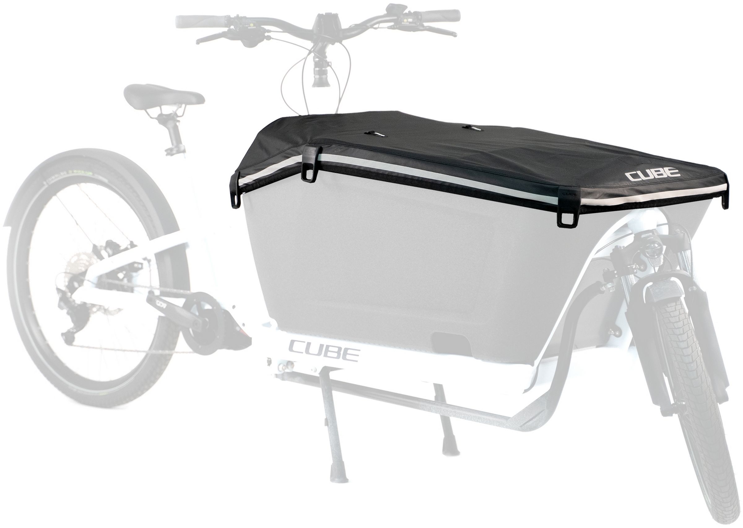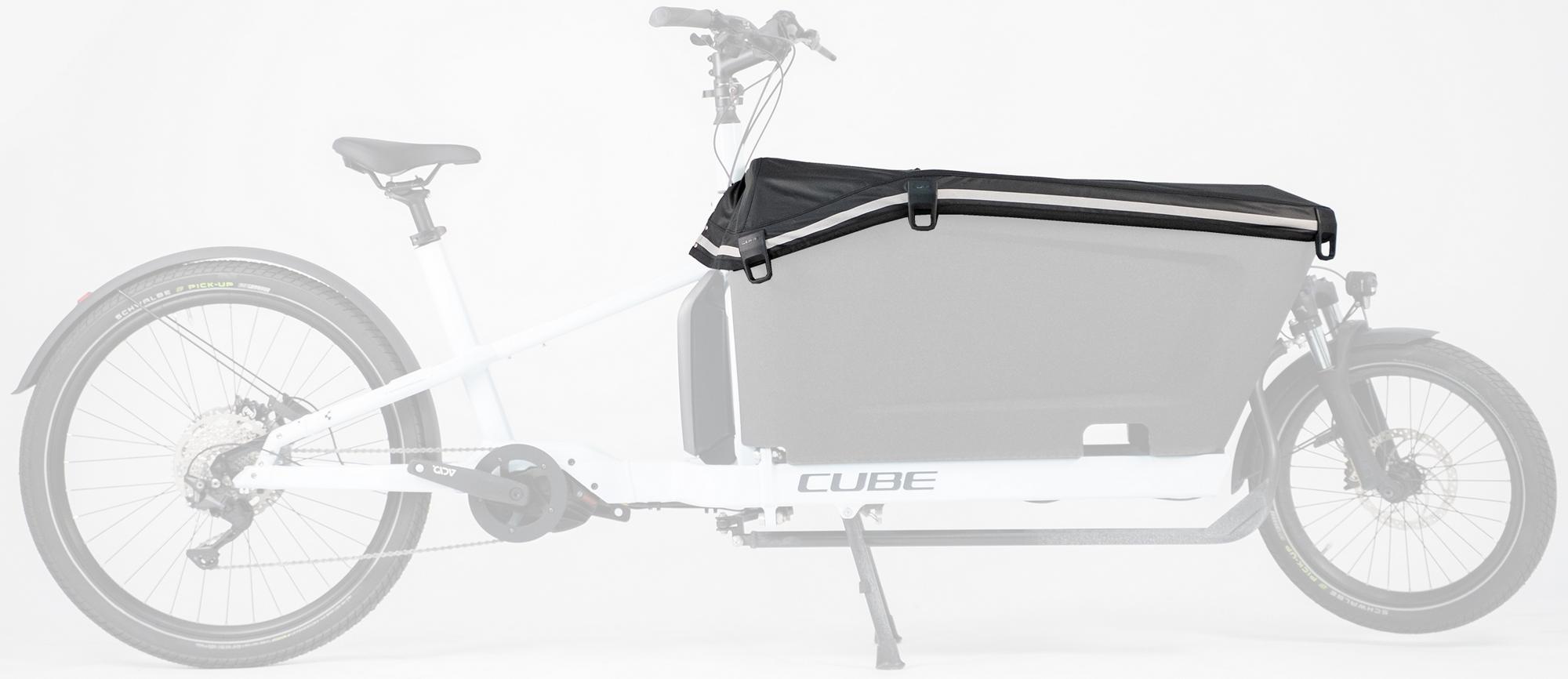No garage? No problem! The cube boxcover has you covered. Keeps water and dirt out of the cargo box of your cube cargo hybrid with cube seat cargo. Includes a section that opens and rolls back, so the boxcover can do double duty as a weather shield when transporting the kids in bad weather.