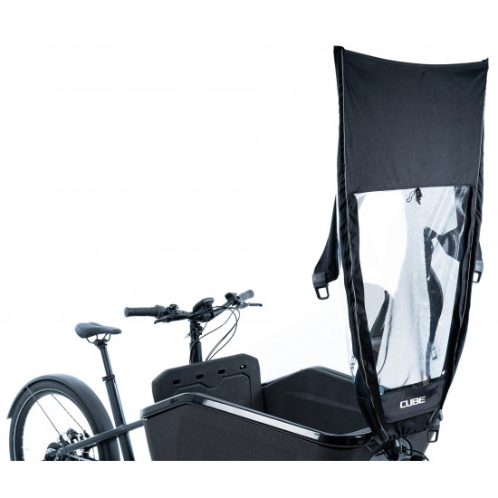 Real cyclists aren't put off by bad weather especially when they've got the temptation of the cube cargo! Keep cargo loads and small passengers dry with our water-resistant rain cover. The fly screen keeps out the creepy crawlies and the pvc window lets light in (both roll-up). Includes functional and sturdy metal screw clips and fiberglass rods with connectors.