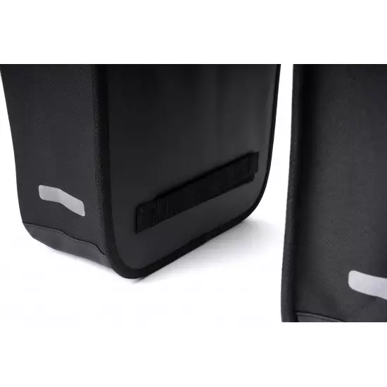 The durable, abrasion-resistant acid pannier bag city 15 double rilink attach quickly and securely to all rilink luggage carriers from acid and cube using the acid rilink interface. Practical mesh pockets in the main compartments of these double panniers keep contents organised. Reflective details and a reflective rain cover improve visibility in low-light conditions.