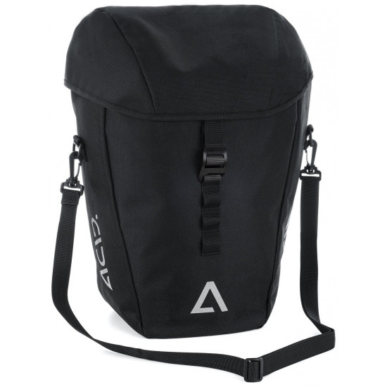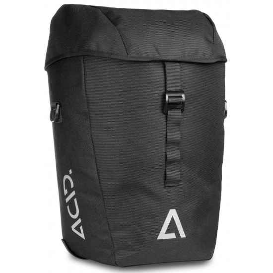 The abrasion-resistant ACID Pannier Bag CITY 20 SMLink 2.0 is ideal for everyday cyclists. The ACID SMLink 2.0 clip system ensures quick and secure mounting on various luggage carriers. It has a padded inner compartment and is also ready for use in bad weather thanks to the practical rain cover. Reflectors enhance visibility, and when it's time to park up, the bag can also be carried comfortably on foot thanks to the shoulder strap.