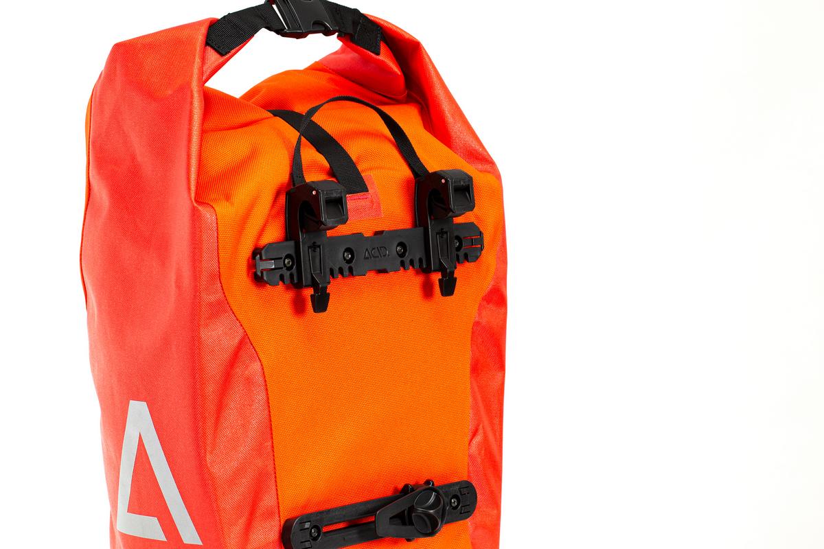 Functional, waterproof travel bag with the ACID clip system for quick and easy attachment. A convenient shoulder strap takes it from rack to shoulder with ease!