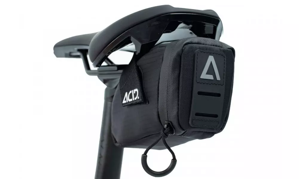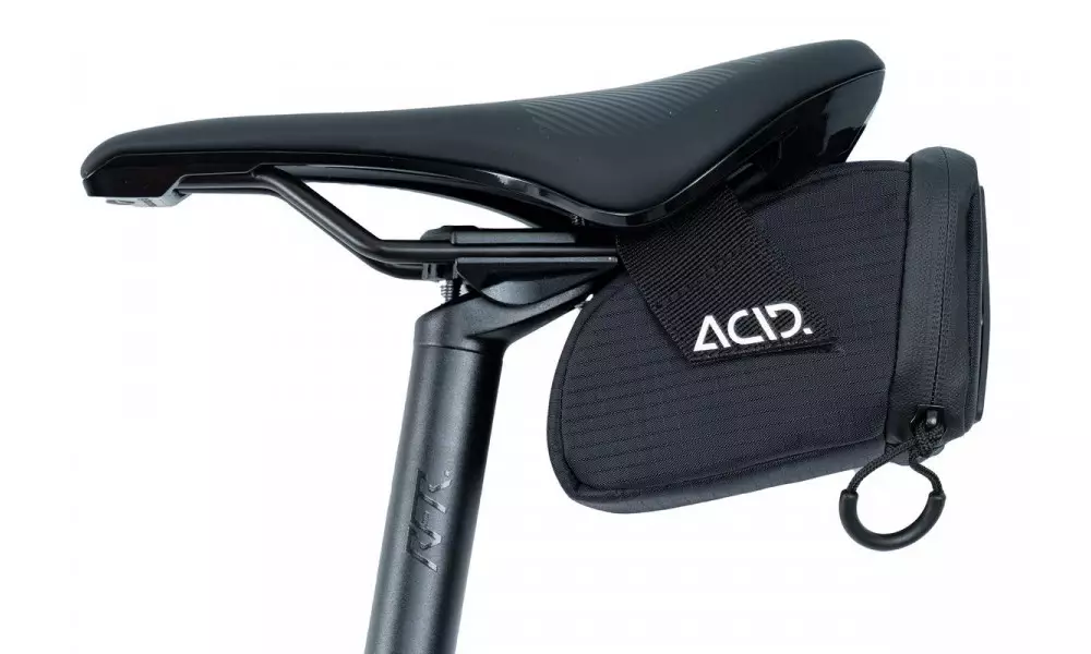 Pack the essentials. The ACID PRO S saddle bag keeps your important bits and pieces safely beneath your saddle, out of the way. The compact design, water-resistant zip and rear light holder are typically ACID finishing touches.