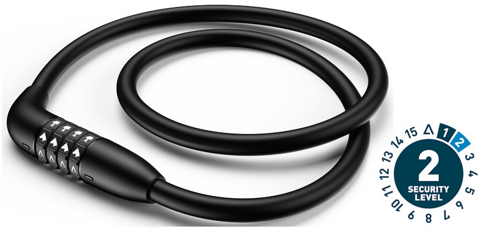 The ACID BENDID C80 cable lock is specially designed for children, featuring symbols instead of numbers. The freely selectable symbol code makes it easy to operate. The silicone-coated cable protects the frame from scratches and maintains its shape thanks to memory function. Both the cable and the lock body are corrosion-resistant, tested for mechanical strength and certified as low in harmful substances. The design ensures quiet locking and provides quick security for children's bikes in everyday use. Its compact design makes the lock easy to transport.