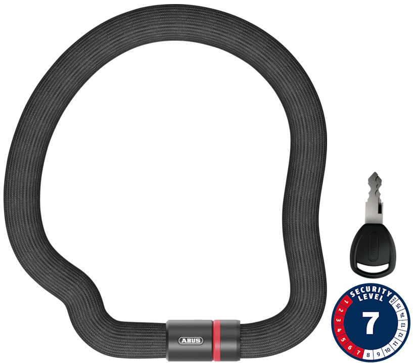 . The ABUS Goose Lock bike lock nestles elegantly around the bike frame and then stays in the desired shape. With the Goose Lock, ABUS has developed a dimensionally stable bike lock that is also highly appealing to the eye and to the touch, and features impressive colouring and design technology. It is made up of several components: the classic 6 millimetre steel chain, the gooseneck, the foam cover and a coating made of plastic fibres. The steel chain like the housing and structural parts of the locking mechanism is manufactured from specially hardened steel. The term "gooseneck" refers to two metal spiral springs wound together that ensure the dimensional stability of the lock. This allows the lock to be bent into the desired shape and wrapped tightly around the bicycle frame. The foam ensures the unmistakable feel of the lock and rattle-free transport. Excellent protection against abrasion and scratches is provided by the durable, highly flexible coating made of plastic fibres. Thanks to the dimensional stability and the foam, it is very easy to transport the lock. It does not rattle on the bike frame, yet still remains flexible.