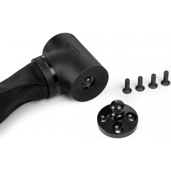 The SOLID PRO K120 Cargo chain lock offers an exceptionally high level of security and is ART2-certified. The extremely robust chain is completely enclosed in a tear-resistant and durable textile sleeve, which dampens noise during transport. The lock can be directly attached to the CARGO frame interface and allows for effective use of the entire chain length for securing to fixed objects, thanks to the integrated loop guide. A protective cap reliably prevents the ingress of water and dirt into the locking mechanism. Soft plastic surfaces protect the bike frame from scratches and the mechanism from corrosion.