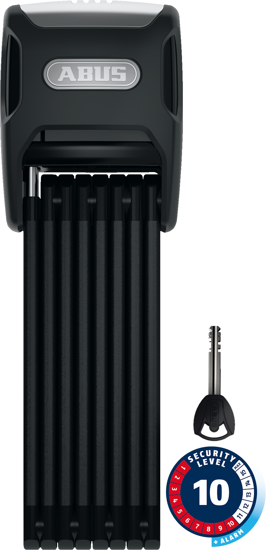 The BORDO Alarm 6000A Folding Lock not only places mechanical barriers in the way of thieves, but also sounds the alarm if it detects tampering. Reliable protection against theft, high flexibility: the BORDO Alarm 6000A. Something to make bike thieves think twice: as well as the ultra-safe mechanical features boasted by all of the folding locks in the ABUS BORDO range, the BORDO Alarm 6000A is the first folding lock anywhere in the world to sound an alarm (at a volume of 100dB) if it detects an attempted attack. It does so thanks to the smart 3D Position Detection sensors, which detect the smallest of movements in all three dimensions. The sensor technology incorporated into the BORDO Alarm 6000A can distinguish between picking attempts and the small vibrations which occur when the lock is connected, for example, or a football bounces nearby; in these situations, the lock will emit a small warning beep but will not sound a full alarm. Acoustic signals provide information on battery level and activity status