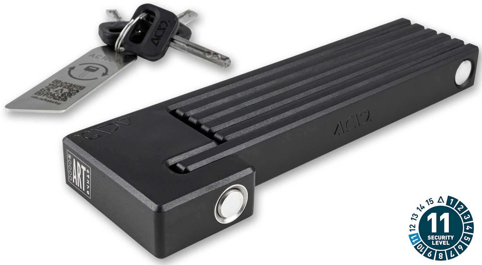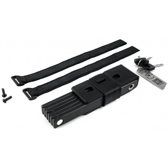 The high-security RIGID 80 PURE folding lock is constructed from high-performance, hardened stainless steel and is certified as meeting the rigorous ART1 theft-prevention standard. A strong spring-loaded bolt makes it incredibly easy to use and close securely. The slim, elegant design doesn't just look good it also shaves weight from the 80cm folding lock to make it practical. Fits to virtually any bike. A low-profile side-opening bracket is simple to screw on in a range of positions or attach using the anti-slip touch fastener. Premium-quality materials and precise workmanship will fend off the most determined theft attempts and stand up to extreme weather conditions. Perfect protection, wherever you are.