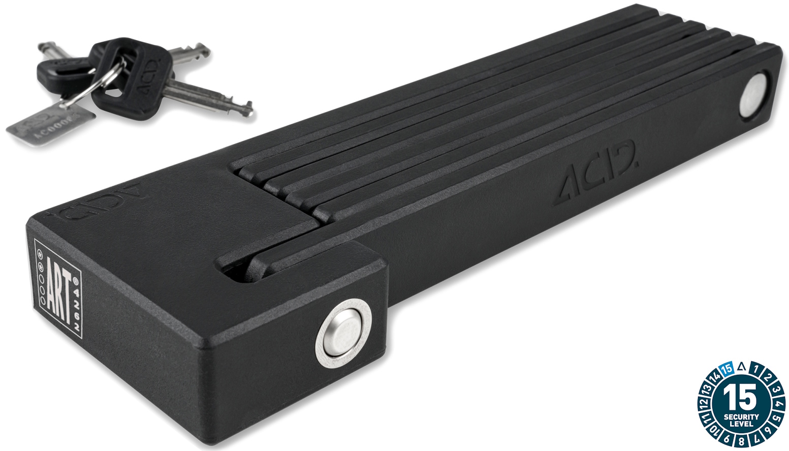 The high-security RIGID 90 folding lock is constructed from high-performance, hardened stainless steel and is certified as meeting the rigorous ART2 theft-prevention standard. A strong spring-loaded bolt makes it incredibly easy to use and close securely. The slim, elegant design doesn't just look good it also shaves weight from the 90cm folding lock to make it practical. Fits to virtually any bike. A low-profile side-opening bracket is simple to screw on in a range of positions or attach using the anti-slip touch fastener. Premium-quality materials and precise workmanship will fend off the most determined theft attempts and stand up to extreme weather conditions. Perfect protection, wherever you are.