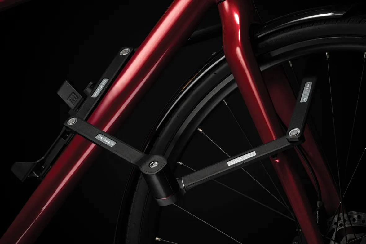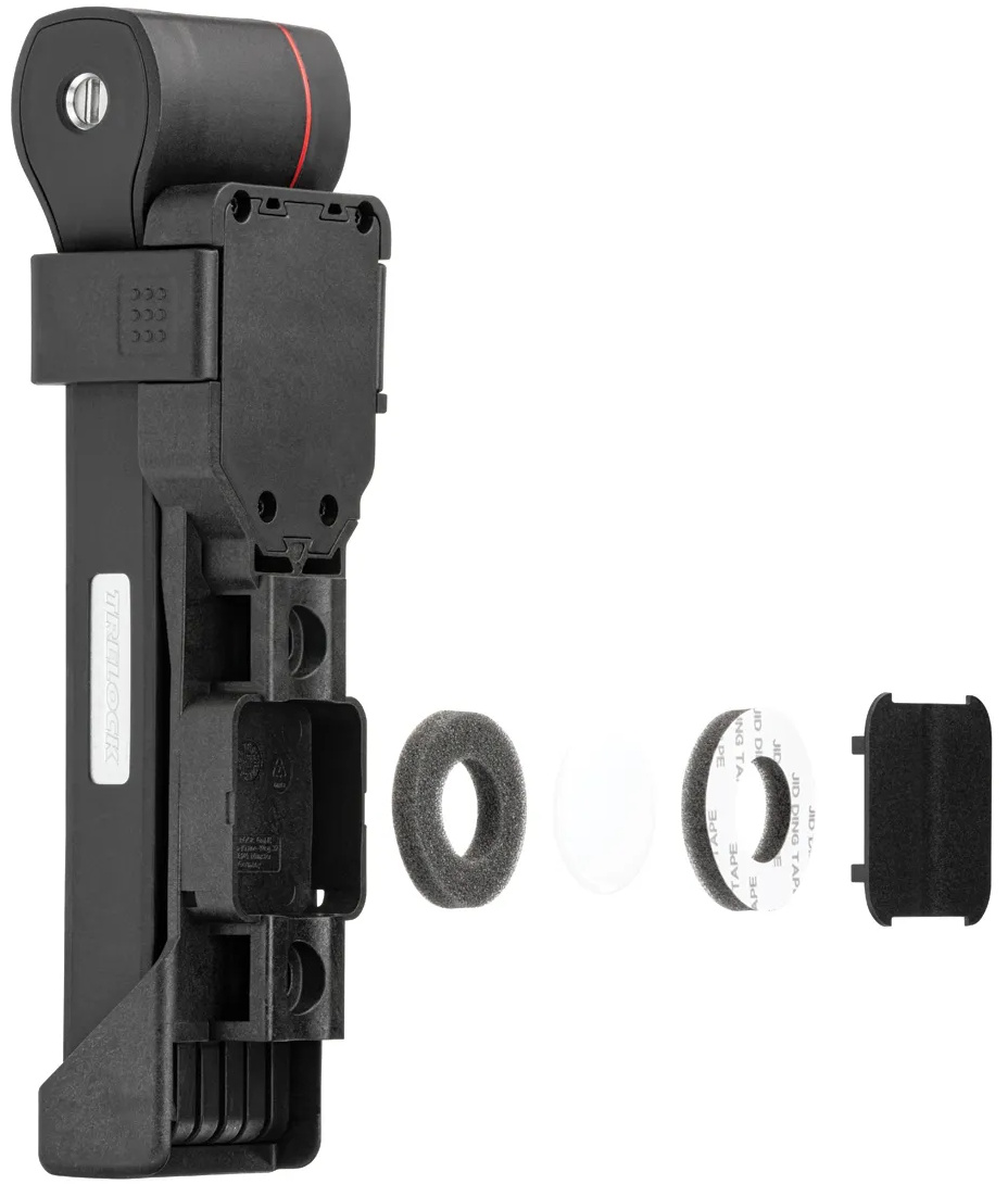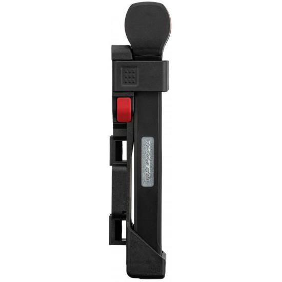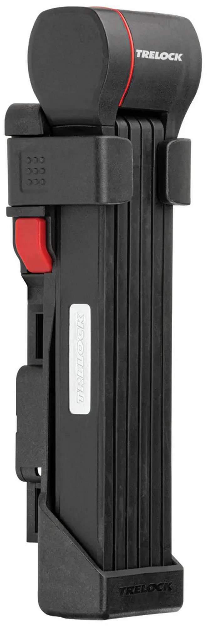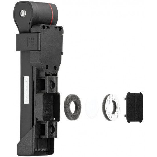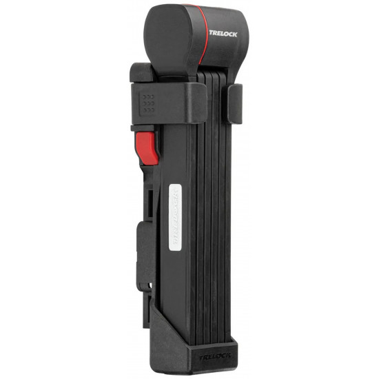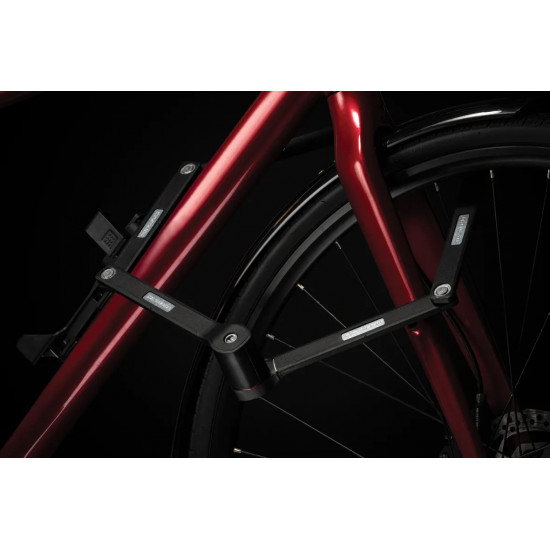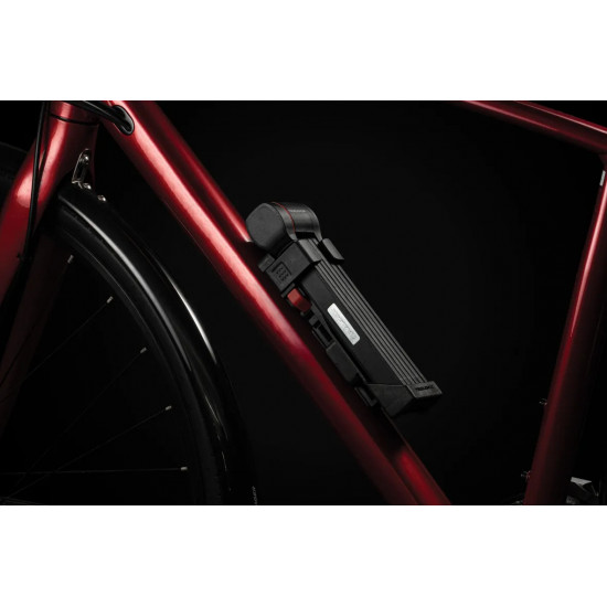 The new FS 480 COPS in the new TRELOCK look, is the compact new addition to the popular COPS folding lock series. The special highlight, however, is the back of the bracket: here, an Apple AirTag or a Samsung SmartTag can be hidden inconspicuously and securely. With the tags, the bike can be tracked via smartphone with minimal effort. The rubberized links made of hardened steel can be unfolded up to 1 m in length. Locking a bike to a stationary object is even easier. For convenient locking, the FS 480 COPS is equipped with a 360 degree rotatable insertion area on the lock head and a reversible key. The IN-X cylinder is protected from dust and dirt by a cover. The 100 cm version comes with the new X-PRESS bracket. The new locking mechanism of the X-PRESS holder makes it even easier to remove and insert the lock. To remove the lock, press the red button and the lock is released. To secure the lock in the bracket again, simply press the brackets together.
