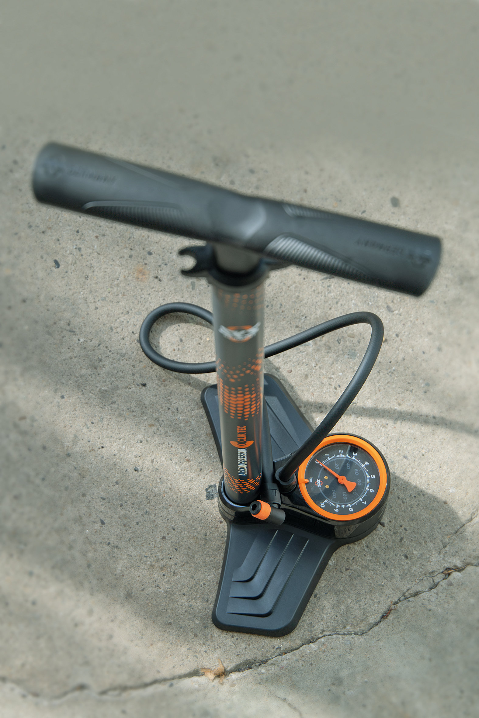 The AIRKOMPRESSOR CLIK TEC 10.0 stands for efficient pumping performance and innovative technology. Specified with the SKS CLIK TEC pump head, the floor pump is optimally matched to the Schwalbe Clik Valve system. The valve head can be operated effortlessly with just two fingers and prevents pressure loss when pumping. The volume flow is 50 % higher than with conventional SV valves.