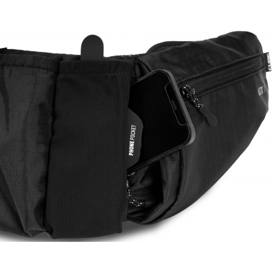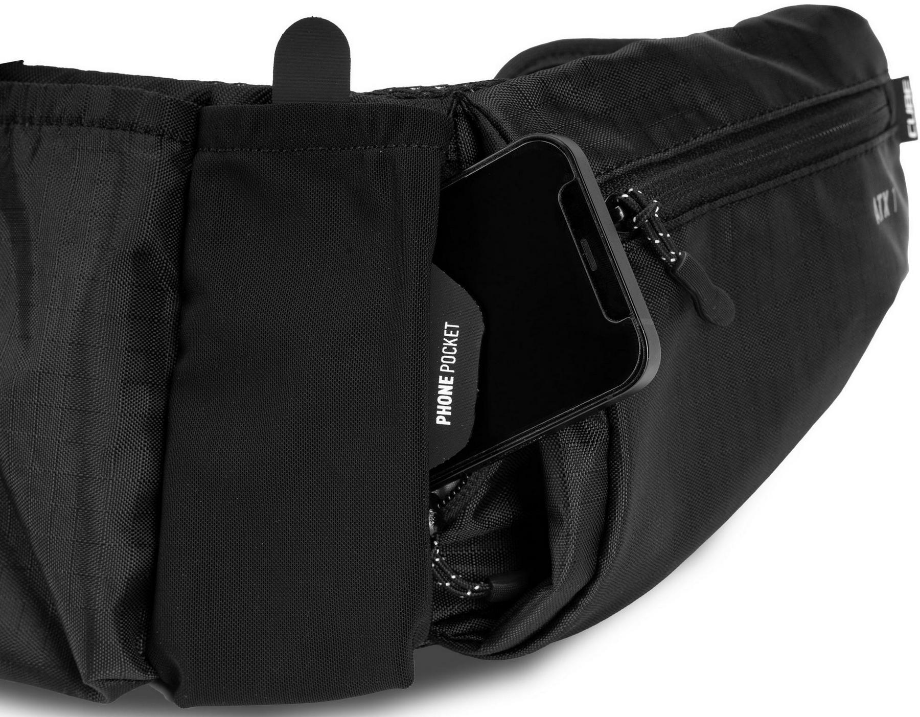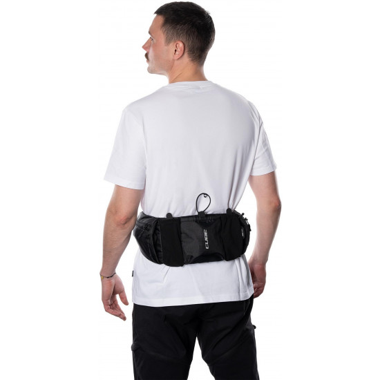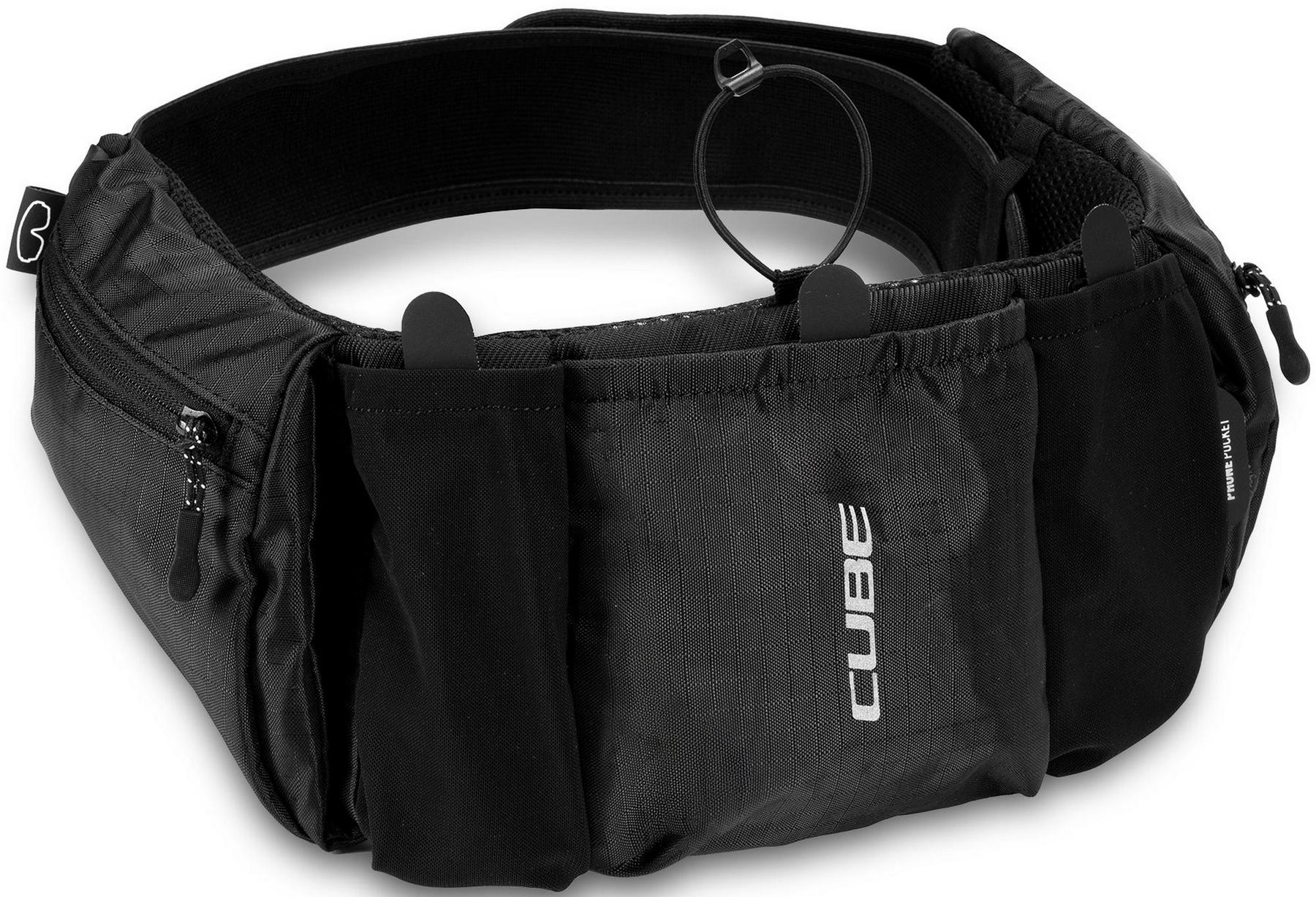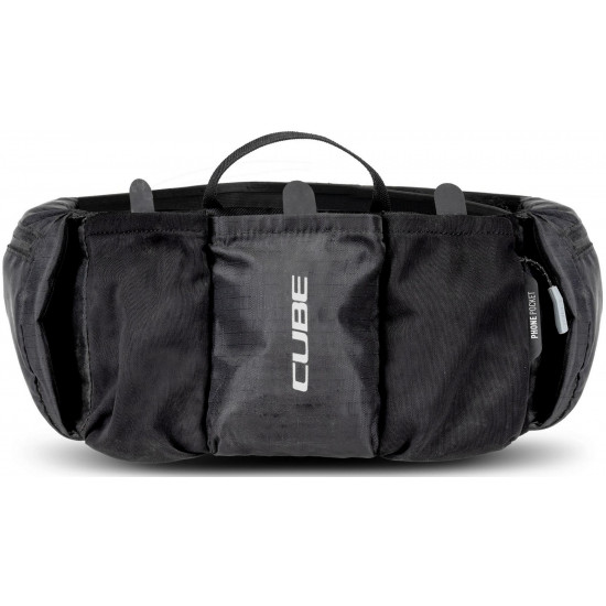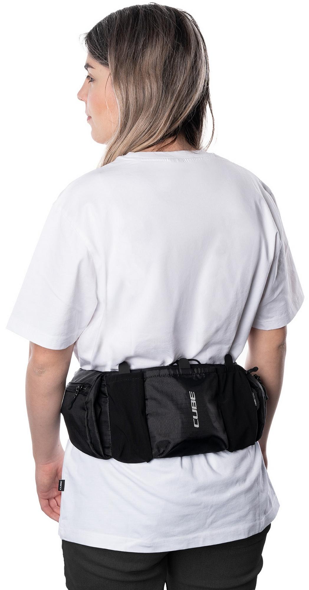 Compact, lightweight at 250g but with a total carrying capacity of 1 litre, the cube atx 1 hip bag is a convenient means of carrying essentials for mountain biking, road or gravel riding. The wide waist belt allows for a snug and comfortable fit so the bag sits in the ideal position. Pocket dividers enable quick access to the main compartments, and there's room for a water bottle in the middle pocket, secured with a rubber strap. A phone pocket with a zipper sits behind the main compartments and there are additional zipped pockets at each side. An easily accessible loop makes stashing a pair of glasses quick and easy and, in the unlikely event that the strap buckle breaks, it's available as a repair item.
