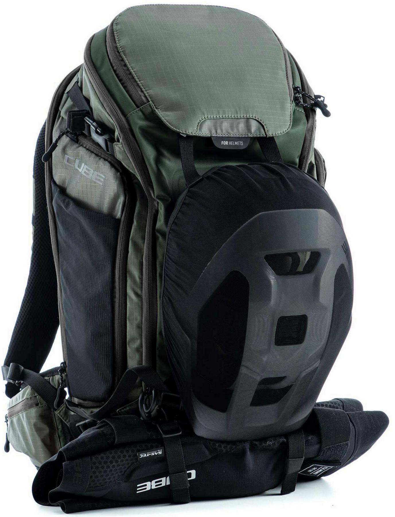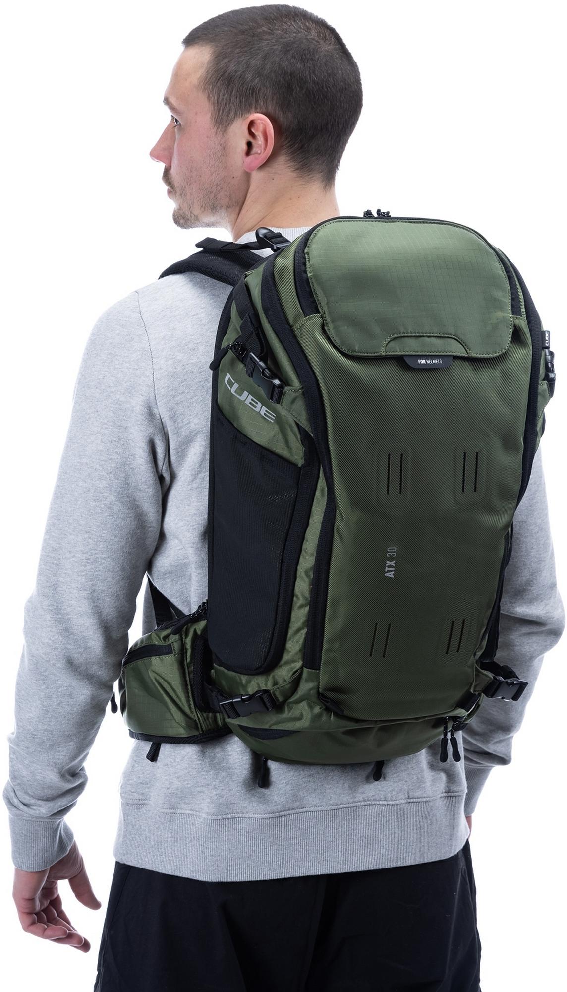 From alpine crossings to multi-day adventures, the cube atx 30 has masses of packing space and is the biggest backpack in our collection. An optimal fit is courtesy of cube's own nf ergonomics back system developed in-house and padded hip straps. Weight is distributed comfortably, while good padding and ventilation keep your back feeling fresh. The versatile molle system also makes it easy to securely attach the cube accessory bag 1 or cube accessory bag 2 using touch fasteners for some practical extra storage. And side compression straps mean you can squash down the volume on the days where you're carrying less gear. Well-designed compartments, two tool compartments and a side pocket for your smartphone keep the most important items within easy grasp. And with a hydration pack compartment and rain cover thrown in, it genuinely has it all!