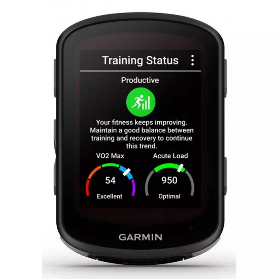 - Training, Planning and Analysis Features: Customizable data pages, Downloadable training plans, Daily workout suggestions (event specific), Primary and secondary workout targets, Auto Pause, Interval training, Advanced workouts, Auto Lap, Vo2 Max, Training status - Cycling, Training load - Cycling, Training load focus - Cycling, Real-time stamina - Cycling, Cycling ability analysis, Course demands analysis , Training effect, Recovery advisor, Virtual Partner, Race an Activity, Segments, Auto scroll, Physio, TrueUp, Unified training status