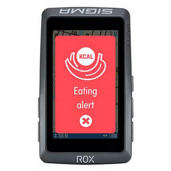 - DRINKING AND EATING ALARMS For optimum energy supply during competition and training, the ROX 12.1 EVO reminds you to eat and drink at points you determine in advance, such as at certain times or distances. You can customize another alarm with your own text ? you get to decide whether it appears only once or is repeated.