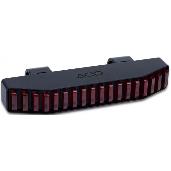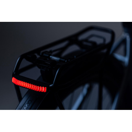 Safety and style redefined, with an eye-catching design and state-of-the-art technology! With a cnc-machined aluminium housing and 18 light strips, the acid pro-e hpa carrier rear light for e-bikes clips to compatible acid carriers. Or convert it for use on any standard carrier with 50 mm hole spacing with its replaceable mounting back plate. The sensor-controlled adaptive brake function reliably alerts other road users when you slow down and additionally it flashes to warn of emergancy braking. Complies with german road traffic regulations (stvzo), and includes a 140 cm light cable and connector for bosch bes2 drive units.