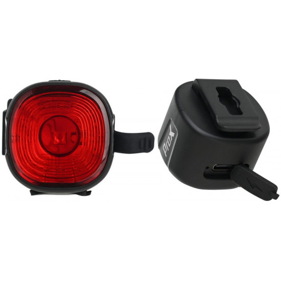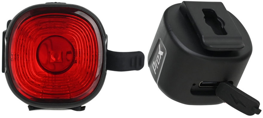 - Rear bike light, charged via USB-C
