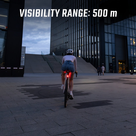 - VISIBLE FROM ALL SIDES The HIRO 10 ensures that you are also clearly visible from the side. The rear light shines at a 240 degree angle and makes you even more visible. An important safety feature, especially in city traffic.