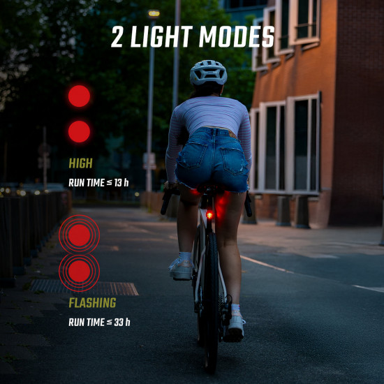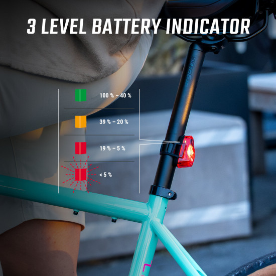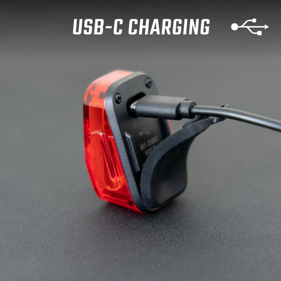 - RECHARGEABLE The NYTE 10 has an integrated rechargeable battery. You can fully recharge the rear light in 3 hours via USB-C. This saves money and protects the environment.