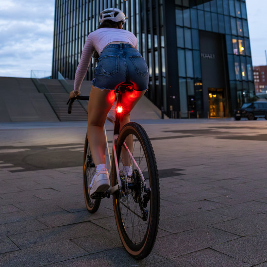 The NYTE 10 ensures reliable visibility in road traffic. The small, lightweight rear light, which can be recharged via a USB-C connection, can be mounted on any seat post in a flash and reliably accompanies you on every journey. With 240 degrees lateral visibility, a battery life of up to 33 hours in flash mode and a visibility range of 500 metres, it is the perfect partner for commuters and everyday riders.