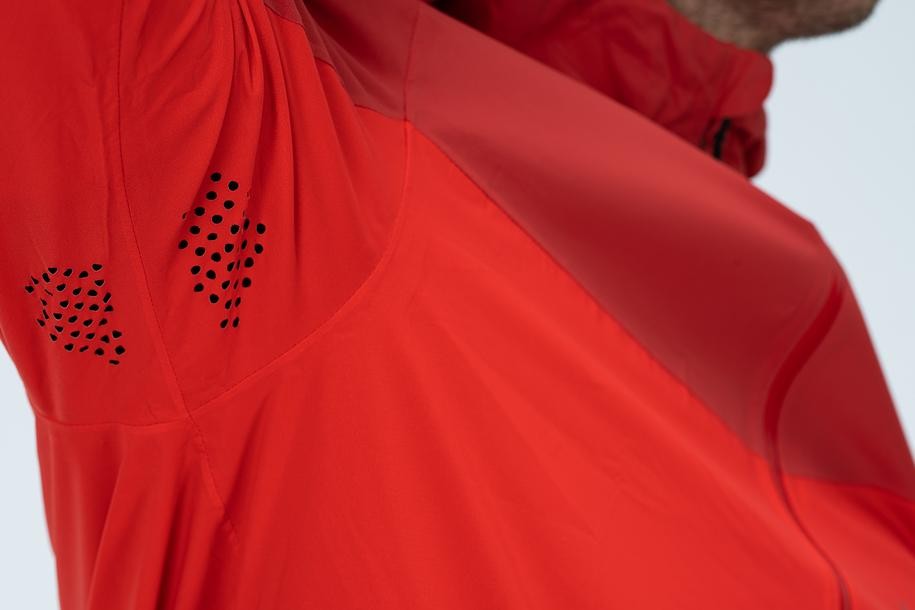 No more bad weather excuses – the ATX Storm Jacket is here! DWR coating and waterproof technical fabric constructed from 2.5 layers do a great job at keeping out the cold wind and rain so there's nothing holding you back. We also added a water-repellent front zip, an adjustable peaked hood and welded seams inside so water stands no chance of getting where it shouldn't. The pockets with hidden zip are the perfect place to stow your keys, smartphone etc. and reflective details provide added safety in low-light conditions. Perforation under the arms keep the air circulating when the trail heads uphill, whilst the drawcord hem can be adjusted to keep the warm air in and the cold air out – it's up to you!