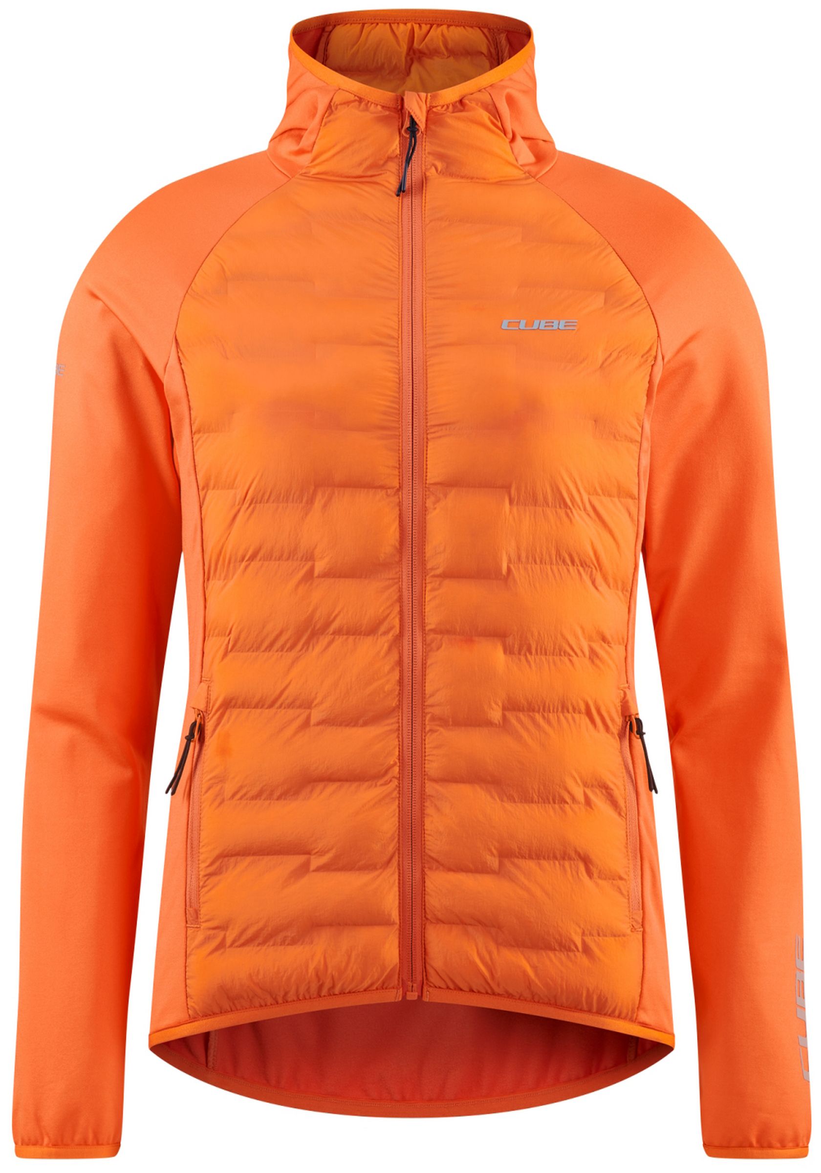 The cube padded jacket is perfect worn over a short-sleeve jersey for extra warmth without feeling restricted. With its comfortable yet sporty cut, it not only looks great but also has a handy hood to keep your ears and head warm during snack breaks or post-ride. Full climate control comes courtesy of the full-length zip.