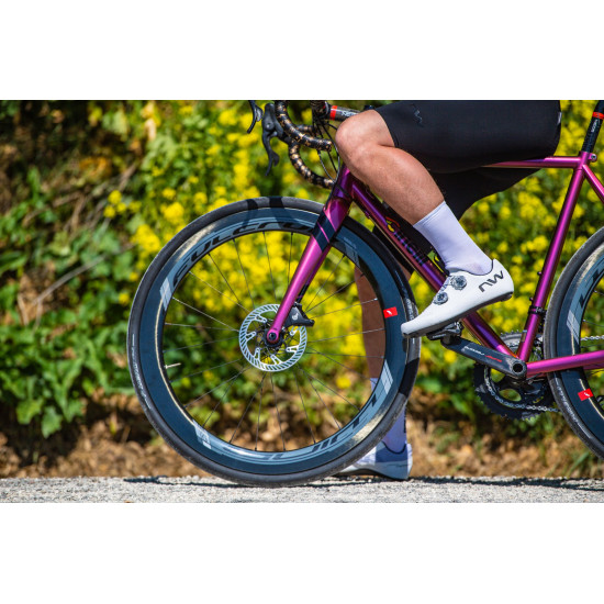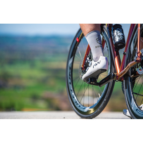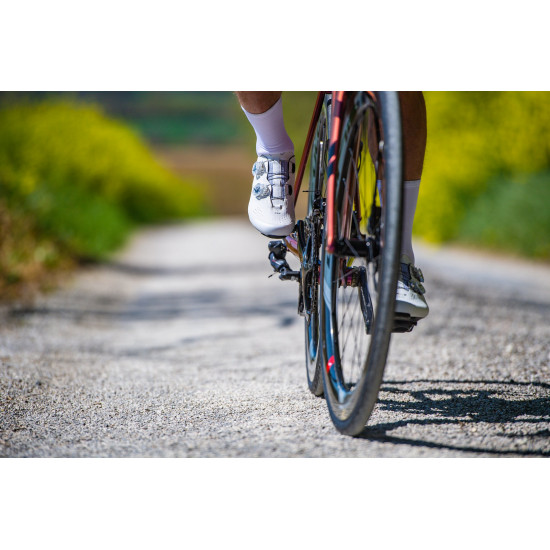 The ARS technology (Anatomic Reticular Support), an exoskeleton that surrounds and adapts to the foot, distributes the load evenly and in a controlled manner when pedaling. The ergonomic Powershape 15 sole is made of unidirectional carbon fibers (compatible with Speedplay/Wahoo pedals) and supports the arch of the foot, increasing pedal pressure. The three strategically positioned ventilation openings on the sole keep your feet feeling fresh even on the hottest days.