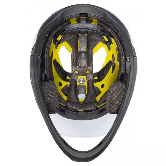 MULTI INMOULD RACE SHELL - double inmould construction with a lightweight, reinforcing cage! For low weight plus maximum impact strength, the protective EPS material is foamed directly into the polycarbonate shell. In the event of an impact, the integrated cage holds the helmet together for extra protection, without adding unnecessary weight. Partly visible, as a design element, it replaces the webbing holders in the rear, since the strap is mounted directly in the cage.
