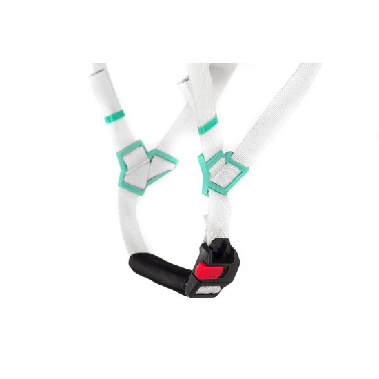 - Padded ratchet chin closure