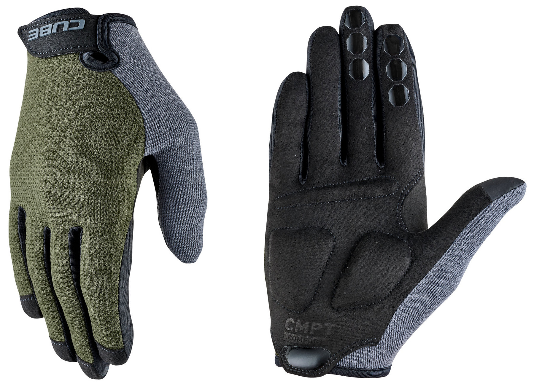 What makes the CUBE CMPT Comfort long-finger glove extra comfortable? Maybe its the cleverly placed padding on the palm. Or the adjustable cuff with hook-and-loop fastener that moulds to your wrist. Grip-print fingertips ensure enhanced bar contact, while the touchscreen thumb provides for seamless device operation. And do we even need to mention they come with a breathable upper and ventilated palm?