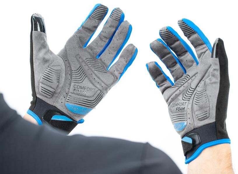 This isn't just any cycling glove. Its sophisticated ergonomics incorporate CUBE Natural Fit gel foam padding to reduce pressure on sensitive nerves so you can enjoy maximum comfort on the bars. We then added special grip print on the palm for an optimum hold and the practical tear-off tab puts an end to annoying fiddling around at the end of your ride. The whole thing is topped off with an adjustable cuff, breathable outer and seamless fingertip design for the ultimate in comfort. And you'll never need to take off your gloves for a photo again thanks to the practical touchscreen function on the index finger. More comfort. More joy.