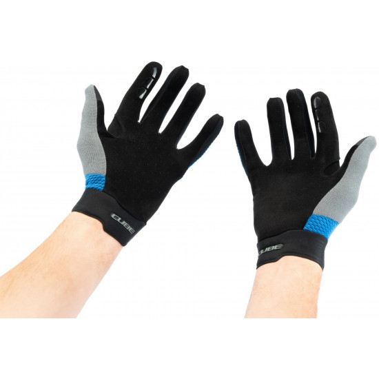 Designed for extreme off-road performance: the cube gravity long-finger gloves. The durable upper is designed to withstand the rigors of rough riding, while the ventilated palm and grip print on the fingertips provide a firm grip on the handlebars in any situation. A close-fitting cuff and seamless fingertips provide maximum comfort so you can focus on the trail.
