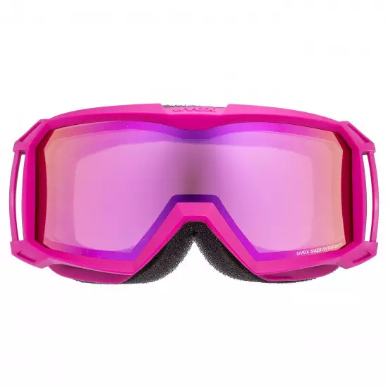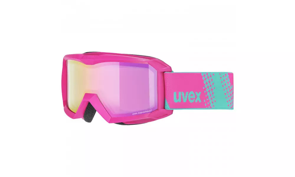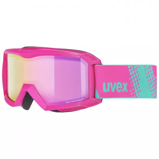 The uvex flizz FM mirrored ski goggles protect against UVA, UVB, UVC and infrared radiation. They have two lenses arranged directly behind each other with uvex supravision technology. A special supravision anti-fog coating ensures clear visibility even in inclement weather. The horizontal curvature of the decentric lens allows for wider peripheral vision without distortion. Thanks to their compact design, they are ideal for children.Technology: Anti-Fog, Break Resistant, Mirror Lens, Supravision Lens Shape: Cylindrical Color of Glass Lens: Mirror Pink Lens Category: S2 Simple face foamFoam membraneElastic rubber strap with adjustable lengthDecentred lens technology ski goggles: Despite the curvature of the lens, the goggles guarantee a 100% distorted view.Litemirror LM: Reflection technology excels in design and functionality. The lens covered with 18 film layers has an imaging effect and, in addition, it protects against infrared radiation with a wavelength of 780 nm to 1000 nm. Special pigments in the polymer lens activate a filter that eliminates and absorbs this radiation. The thermal load is significantly reduced, thus reducing dehydration and eye fatigue - preventing gray haze.Supravision ski goggles: Anti-fog layer. Unique uvex [supravision] technology provides extreme scratch resistance on the outside of the lens and continuous protection against clogging from the inside.UV protection ski goggles: UV absorbing filters built into the material 100% protect the retina of the eye from UV damage up to 400 nm. All uvex glasses provide 100% UVA, UVB and UVC protection.Double lens cylindric: Double cylindrical lenses offer protection against UV radiation and mechanical damage. The gap between the glasses increases the fogging resistance. Horizontal curvature for wider field of view.